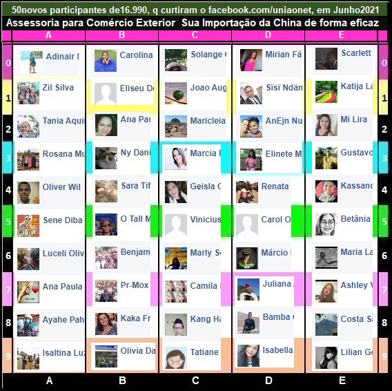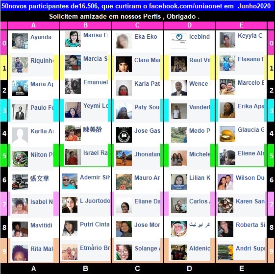 A3 Mirian Severino Ribeiro A4 ??? Wu Jiazhen A5 Candydolers Da Meff A6 Eledi Souza
