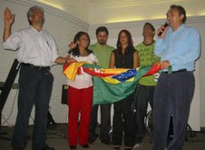 Brasil, correndo em todo o auditório junto com as outras nações, alegrando-nos