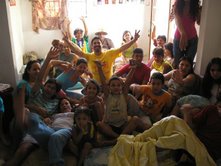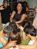 Deparamos-nos com um triste quadro da juventude espanhola: Drogas, álcool, prostituição, violência e libertinagem. Sentimos-nos totalmente impotentes diante do que encontramos ali. Em um determinado momento, havia mais de 200 jovens ao nosso redor, quando de repente começou uma briga (muito comum nestas festas) e todos saíram correndo pra ver, mas, continuamos assim mesmo e alguns ficaram e depois muitos voltaram e continuaram ouvindo de Jesus e conseguimos contatos pessoais com alguns deles. Realizamos oficinas de artes no dia 12 (que era feriado) com a participação de 12 pessoas. Neste período visitamos três Igrejas e pudemos ver a maneira tão maravilhosa que Deus fala com o seu povo, edificando, consolando e animando. A equipe estava composta de 10 adultos e uma criança de quatro anos. Com algumas adaptações na casa, conseguimos instalar a todos. Graças a Deus tudo saiu bem. Foi um tempo bem diferente... Tempo de abrir portas, de provar novas estratégias e tempos. MOTIVO DE ORAÇAO