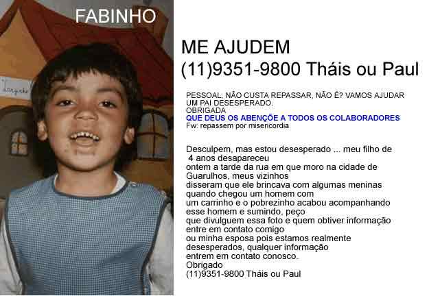 do seu tempo, espalhe este apelo a quantas pessoas puder e ajude