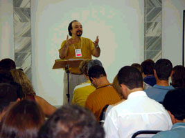 Saudações na paz do Senhor, amados(as) e queridos(as) irmãos(as) em Cristo Jesus, gostaria de iniciar esta carta com um passagem bíblica de Coríntios, simplificando um trecho de um livro cristão("O Homem Espiritual" Vol. II Watchman Nee ), que tem sido bastante edificado para minha vida . "Portanto meus amados (as) e queridos(as) irmãos(as), sede firmes e constantes, sempre abundantes na obra do Senhor, sabendo que , no Senhor , nenhum dos vossos trabalhos é vão." ( I Coríntios 15:58) A obra espiritual tem como alvo dar vida ao espírito do homem ou edificar a vida no espírito. Nossa obra não terá nenhum valor ou eficácia, se não for dirigida ao espírito situado nas profundezas do homem. O que os pecadores precisam não é de pensamentos sublimes. O crente precisa daquilo que nutre sua vida espiritual não um mero conhecimento bíblico. Se tudo que comunicamos são apenas sermões com excelentes divisões, palavras maravilhosas, abstrações transcendentes, discursos inteligentes, ou argumentos lógicos, estamos apenas acrescentando pensamentos as mentes das pessoas, despertando suas emoções novamente ou ativando suas vontades para tomarem mais uma decisão. Com um espírito elas vêm e como os espíritos moribundos elas voltam sem ter uma real e verdadeira experiência de conversão no espírito a despeito de todos nossos esforços em favor delas. O pecador precisa ter seu espírito ressuscitado e não ser capaz de argumentar melhor, derramar lágrimas profusas ou tomar um decisão mais firme. Do mesmo modo que o crente não necessita de edificação exterior, visto que sua verdadeira falta é a vida interior mais abundante, ou seja, como crescer espiritualmente. Se focalizarmos nossa atenção no homem exterior e negligenciarmos o homem interior, nossa obra será totalmente vão superficial. Vejo, sinto e vivo internamente no espírito a importância de tudo que tenho realizado neste lugar. Orem por todos nós.(www.semadec.org.br ) 8/11/05