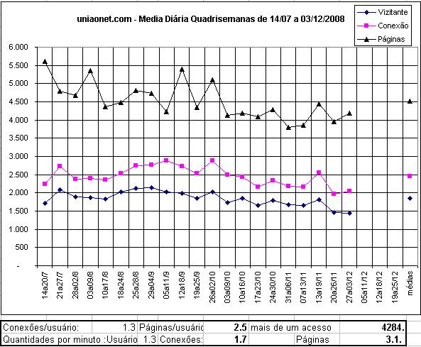índices em Ago/2010 : 487 Viz/dia = 20 Viz/hr, ou seja : a cada 3 min uma pessoa acessa o uniaonet.com Maior