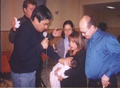 Um precioso milagre e presente do Céu...Há um ano atrás os médicos falaram para Jesús e Marlene (um casal da nossa Comunidade) que desistissem da idéia de ter filhos porque Marlene tinha problemas serios que não lhe permitiriam engravidar nunca... No mesmo ano veio o profeta (que esta detrás do Pr. Jorge) e disse a ela da parte de Deus: "que havia acabado a esterilidade na sua vida.." Um ano depois, vemos na foto, a Jesús e Marlene consagrando a sua pequena e preciosa filhinha ao Senhor. Para Ele não há impossiveis !!