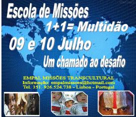 - 06/12/2016 . 23/09/2005 _ Despertamento Missionário em Lisboa-Portugal No dia 10 de Setembro, nas instalações da Igreja Evangélica de Carnaxide realizamos o 1º Despertamento missionário e intercessão. Com esta iniciativa procuramos ampliar a visão missionária da igreja portuguesa para que se possa conhecer melhor e apoiar às missões nacionais e trânsculturais. Neste encontro participaram irmãos de diversas denominações. Estavam presentes mais de 45 pessoas. Houve apresentações especiais sobre os seguintes paises: Brasil, China, Coréia do Norte, Moçambique e Portugal (população, principais religiões, músicas, vídeos, trajes, comidas típicas e sobre o progresso atual e dificuldades particulares na pregação do Evangelho). Este tipo de trabalho tem como objetivo levar às igrejas, apesar de pequenas, a entender que a missão é a razão de ser da igreja de Cristo, o que nos desafia continuamente vivenciar a evangelização e a edificação da igreja. As apresentações e relatórios missionários foram feitos com o intuito de: · Fomentar e apoiar iniciativas de evangelismo e missão, para promover despertamento missionário nas igrejas locais; · Desenvolver a visão missionária que permita o engajamento e ação missionária das igrejas locais. · Formar uma retaguarda de oração que interceda pelos missionários e seus campos em Portugal e no mundo. Ficamos animadíssimos com a participação dos jovens, senhores e senhoras; todos estavam empenhados nos preparativos e tarefas para que este evento pudesse ser um sucesso,como foi. Continuem orando por nós para que o Senhor nos dê sabedoria e forças. Em Cristo, Senhor das missões, Rev.Francisco Moura, Elisama e Kellita Missionários em Portugal Juvenal Clemente _ Em resposta ao vosso pedido informo que a conferência missionária a realizar em Lisboa de 25 a 27 de Fevereiro é na ASSEMBLEIA DE DEUS DE LISBOA, na Rua Neves Ferreira, 13-3º. com o seguinte programa: Dia 25 - Reunião às 20:30h. Dia 26 - Reunião especial para jovens (GERAÇÃO 2000) 15:30H Dia 27 - Tempo especial de oração às 09:00, seguindo-se um tempo de consagração Culto de Encerramento 16:00 h. Saudações fraternais em Cristo http://www.uniaonet.com/olintomacau.htm