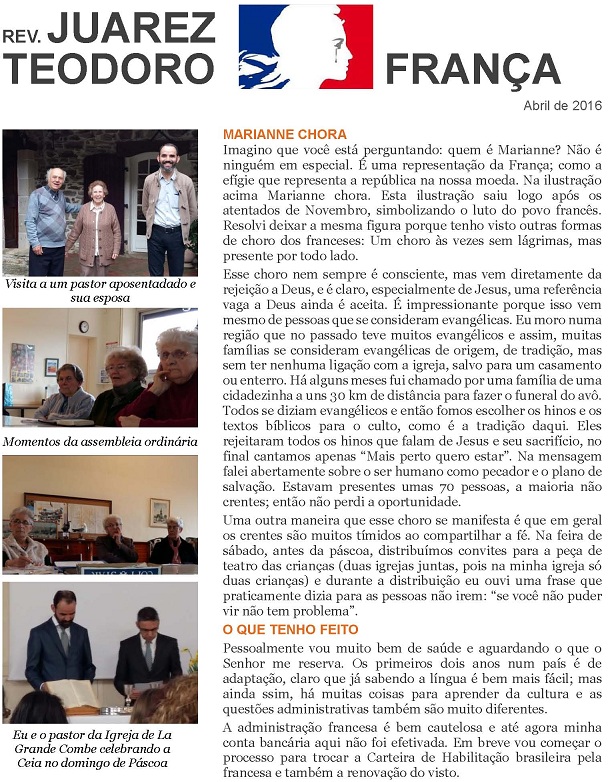 nono ano aqui na Franca. Grandes coisas Deus tem feito por