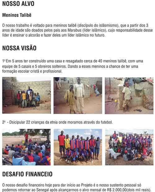 Nos temos tantas novidades que vamos dividir a nossa cartinha informativa esse mes em duas partes , essa a primeira sera sobre o orfanato, e a segunda sera sobre nossa familia, nosso primeiro ministerio. Recentemente tentamos mudar de casa , porque a que estamos ta pequena pros meninos, e temos mais alguns candidatos a entrarem e pra nossa supresa, a resposta pelo proprietario foi nao, ele nao queria alugar a sua casa pra o trabalho como o nosso,(cristao), e esse nao foi o primeiro nao, antes nos tivemos o mesmo problema , ja com o negocio fechado , o proprietario nos ligou no inicio do ministeiro e disse que nao podia nos alugar , tivemos que as pressas correr atras e procurar uma outra casa. Ja temos tido um entendimento que nao da pra ficar morando de aluguel por muito tempo, alem de ser caro, nos moramos em um pais mulcumano, nos levantamos apos esse nao, que foi bom pra nos, nem sempre os naos sao ruins, esse foi excelente pra nos enterdermos que os meninos do nosso orfanato precisam de uma casinha deles. O nosso tempo no Brasil de divulgacao sera destinado