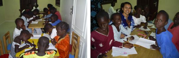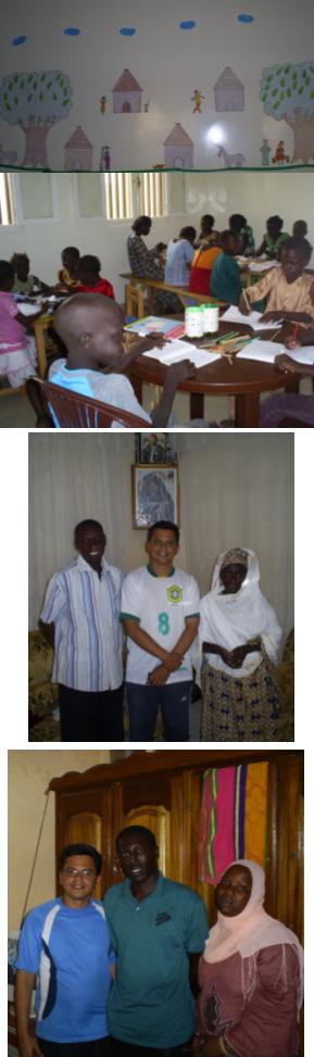 espaço suficiente em nossa casa. Dividimos as crianças em 2 grupos, porque muitos não sabem nem mesmo segurar um lápis, fato lamentável, crianças de 9-10 anos que não sabem nada de escrita, nem de leitura. As crianças são carentes, por isso servimos um lanche todos os dias de projeto, elas ficam conosco de 9:30 às 13:00 hs, durante esse período elas aprendem leitura, escrita, e atividades de pintura, etc. O projeto é realizado 3 vezes por semana, terças, quintas e sábados, porque preciso do intervalo de 1 dia para preparar os cadernos, já que tudo é feito à mão, temos uma impressora, mas os cartuchos aqui são caros. Como em Yoff não é permitido falar abertamente de Jesus, temos visto esse projeto como uma porta aberta para que as pessoas comecem a compreender o amor de Cristo, aos poucos estamos inserindo nas aulas oração, histórias bíblicas, etc. Segue abaixo as fotos de cada criança, com seus respectivos dados. Mbay Diol Idade: 10 anos Etnia: Lebu Pais divorciados Abydou Samba Miko Idade: 8 anos Etnia: Lebu Pais divorciados Fodé