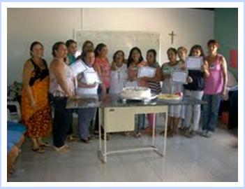 3 Além dessas atividades duas pessoas foram treinadas no curso de camareira(concluído) e duas pessoas seguem em curso de costura por três meses. Doze pessoas foram beneficiadas com curso de bordados em fitas. Estamos