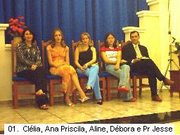 Apresentamos: "Grupo Hebrom " Adoração ![]() Unidos no Ministério de Adoração Clarice G. Barreto, João Carlos Barreto, Laura Barreto, Alice G. Barreto, Aline G. Barreto e Thyara S. da Cunha (13/03/05)