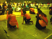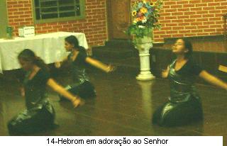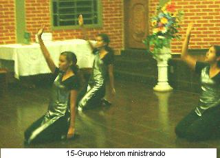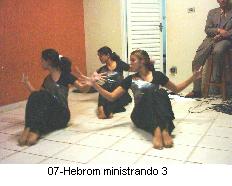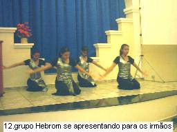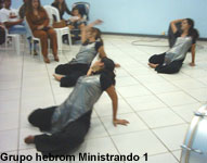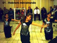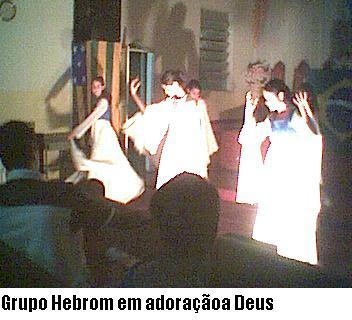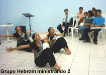 Grupo Hebrom com a participação da irmã Rosiclea, apresentando a coreografia da música Brasi, do CD Nº05 ´Nos braços do Pai´, do grupo Diante do Trono. Encerramento da apresentação na Igreja Cristã Evangélica de Iporá/Goiás(BR).