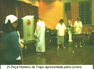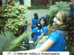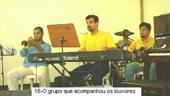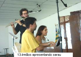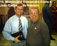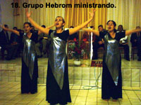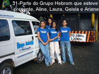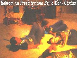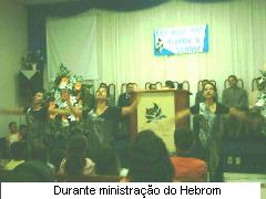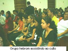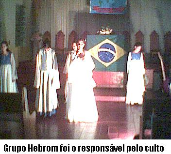 e o grupo Ágape de adoração.No dia 19/12 estivemos no culto da Igreja Presbiteriana em Beira Mar, no município de Duque de Caxias, do Reverendo Ruivo, ocasião em que também foi comemorado o Dia do Pastor Presbiteriano. Depois do culto houve um social onde o Grupo Hebrom pode confraternizar e trocar experiências com os jovens do Grupo Adorarte. A viagem foi tão abençoada que já sentimos saudades dos irmãos cariocas, mas temos fé que se o Pai assim o desejar, no final do próximo ano estaremos juntos, pois em todas as denominações ficou a porta aberta para voltarmos. O carinho de todos nos serve de incentivo para prosseguirmos na jornada através do Grupo Hebrom/ ênfase Missões. Para que em 2005 o Pai realize cada um dos sonhos que pudemos testificar dos irmãos do Rio e que a unção divina esteja presente na vida de cada um. Obrigado Senhor pela oportunidade da viagem e pela vida de cada um que conhecemos do Corpo de cristo. João Carlos Barreto