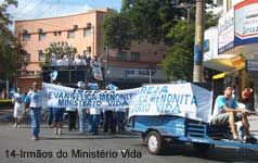 entrega donativos em Aparecida de GoiâniaO grupo Hebrom de adoração entregou várias peças de roupas na Sociedade e Creche Vida Esperança, na Rua dos Curiós, Qd.18, Lt 20, setor Morada dos Pássaros. A doação faz parte da campanha de doação do programa Hebrom Cidadania que visa auxiliar aos mais necessitados. Na entrega esteve presente o Pr. Helder Marcelino, da Igreja de Cristo de Iporá que estava em visita ao grupo. As doações foram entregues para Regina Calixto que na ocasião representava a instituição. “Essas roupas chegaram em boa hora, pois estamos querendo realizar uma Feira da Pechincha para pagar o licenciamento da Kombi que serve ao abrigo”, revelou Regina. Mais uma vez pudemos comprovar que as bênçãos do nosso amado Pai nunca tardam. Que os donativos tenham sido bem aproveitados, agradecemos também aos irmãos da Assembléia de Deus Ministério de Anápolis do SPL/01 que fizeram a doação e ao irmãos Ciro que através de e-mail pela Uniãonet.com nos apresentou a necessidade. Deus é Fiel! João Carlos Barreto enfasenotícias@bol.com.br GRUPO HEBROM Apresentação do grupo Hebrom durante culto no templo onde congrega, na Assembléia de Deus Ministério de Anápolis, na Av Circular, St Pedro Ludovico, em Goiânia, no dia 17/10/2004. Para ter a participação do grupo em eventos e cultos, basta o agendamento para Goiânia e Região Metropolitana, para outros municípios é combinado com o organizador, sem qualquer pagamento para o grupo. João Carlos Barreto Conselheiro (João este arquivo de vídeo não está sendo possível de abrir , e o tamanho incompatível com o espaço do Portal ... Se possível , enviar no modo foto.jpg )