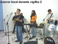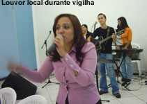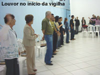 Uma grande benção foi o culto e a vigilha realizada na sexta-feira (15/07/05) no templo da Igreja Filhos da Luz, no Centro de Goiânia, e pastoreada por Pulo Diehl. Aconteceram várias ministração de louvores, adoração e muita unção com a Palavra entregue pelo Pr Aurélio Fagundes do Ministério AVIV. Os louvores foram ministrados pela irmã Betânia do MinistérioAVIV da cidade de Goiâtuba (GO), do Grupo de Louvor da Igreja Batista Ágape de Goiânia e do grupo local da Igreja Filhos da Luz. O grupo Hebrom apresentou duas coreografias de adoração a Deus.