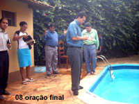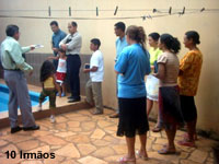 obreiros que após a palavra e oração desceram com ela nas águas.