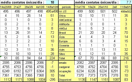 na quadrisemana de 14/08 a 10/09/2009 ( Semanários de 495 a 498 ) Os Semanários são confeccionado diariamente (on-line) no www.uniaonet.com/diadia.htm e FECHAMOS a redação todas as Quinta-Feira às 17:00 . São enviados para cerca de : 2.098 endereços e identificamos Grupos que tem retransmitido para cerca de outros 2.000 destinatários . O conteúdo integral está disponível no Portal ( é totalmente de livre reprodução ) , caso sua mensagem (ou alguma outra que voce recebe) não conste deste informativo favor nos reenviá-la. : veja o email no : www.uniaonet.com/email.htm Por favor use de todos os meios , para divulgar a existência da nossa necessidade de estar em comunhão com o corpo de CRISTO , e compartilhe conosco o que Deus tem feito no seu dia a dia , da sua igreja , de seu bairro , cidade ... última atualização _ 05/09/2009 - 17:00 _ QUINTA. - - - Gostaria de contactar com a irmã Mis. Verônica Farias do Projeto de Cuidado ao Missionário na África do Sul. Se possível passe o meu e-mail para ela. Gostaria de saber se vocês têm algum contato com missionários de trës países: Tunísia, República Centro Africao e Somália. Gostaria de propor um Projeto de Intercessão a eles. Se puderem passem o meu e-mail para eles. Um grande abraço com a paz do Senhor das Nações_ Sandra - - - Ela esta estudando ingles em Cape Town no momento e estamos acertando algumas entrevistas em Worcester onde ela ja visitou a nossa base de JOCUM. Abraços nilto cavalheiro www.projetocidadao.com = = = . ANGOLA www.projectokinzau.blogspot.com