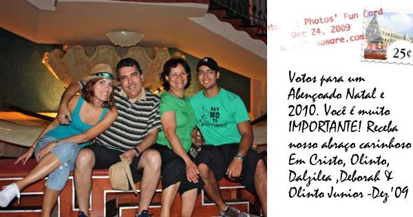 HELLO MY FRIENDS, MERRY CHRISTMAS AND A BLESSD NeW YEAR, ALBERTO. Alô pessoal, Um Feliz Natal e Próspero Ano Nôvo. De seu amigo de sempre, ALBERTO www.inovelink.com.br _ Feliz Natal e Espetacular 2010 www.apec.com.br Radar Criança - nº 20 Janeiro / 2010 UM ABENÇOADO 2010 - Continue em sintonia na evangelização e discipulado das crianças! http://gilceleteopoesia.blogspot.com . . . O ano de 2009 vai terminar levando consigo todas as suas derotas;medos,insegurança e muito mais....... Mas atençao o ano de 2010 está chegando trazendo de novo as lutas, inseguranças,medos... Será que vamos DESISTIR? Nao porque,JESUS nasceu exata- mente para nos dar VITÓRIA. Por isso a cada ano celebramos o Natal,renovando sempre a nossa ESPERANÇA e perpetuando a nossa ALEGRIA. Desejamos a todos um UM FELIZ NATAL e um ANO de 2010 cheio de alegria. Porque alegria do senhor é a nossa força. OBRIGADO PELAS AS ORAÇÕES E APOIO. Jorge,Socorro e Gabrielly www.missoesmundiais.org.br Escola de Missões Mundiais - Fim de ano : Feliz natal para você e toda sua Família . . . www.soma.org.br Natal: Cristianismo ou Consumismo? O que realmente comemoramos? Leia artigo de Marcos Custodio de A Rocha Brasil. www.elvinonuevo.org Damos gracias al Eterno por su vida y aprovechamos para saludarle por estas fiestas (Janukah) y desearle un 2010 con abundante bendicion para usted! Hemos finalizado la V Convocatoria Latina en Israel, con grandes bendiciones, hermanos de varias naciones se dieron cita para bendecir Israel en Jerusalem! En breve tendremos las imagenes en la web Le comparto que en este 2010 tenemos muchismos planes para extender el Reino de Yeshua en Israel y ante el pueblo judio. . . Assista ao vídeo Luzes do Natal pela www.hebromnews.com = = = . . . Deus me disse que me levaria a muitos paises:sem dinheiro,sem visto??mas a providencia de tudo veio da parte de Deus! 27 paises passados para gloria de Deus...realizamos em muitos deles a voz profetica de Joao Batista que em meio ao nada..em meio ao deserto,exclamava o Arrependimento.Muito obrigado com carinho aos amigos que nos ajudaram a chegar ate aqui(Massimo e Danillo e suas respectivas familias entre muitos outros...)Amigos de ministerio que muito me insentivaram e me ajudaram a crescer desde quando cheguei na Europa,comecando pelo Pr. Jose antonio,Pr. Jose Augusto,Pr.Paulino,Pr. Mario,Pr. Gesiel,Pr. Edson,Pr. Fernando, Pr. Lincon e muitos outros que nos ajudaram e acreditaram em nosso Potencial,em nosso Ministerio.Sou grato a Deus pela vida destes homens de Deus. O ano se finda e com meu coracao repleto de gratidao a Deus por tudo que fez em minha vida em tao pouco tempo vos desejo UM FELIZ ANO NOVO a todos e lembrem: “...O vosso trabalho nao e em vao,AVANTI”! E tempo de colher os frutos,Jesus esta voltando! Familia Sathler Missionario Vinicius Sathler e Rosi Heinsberg - Deutschland Prezado Irmão Yorrito, Eu e minha família desejamos um natal na presença do verdadeiro Senhor da história. Ele é o Supremo Rei de todo o Universo. Que pena que o mundo só se lembra dEle nessa época do ano! Que em 2010, Ele continue a abençoar o seu trabalho na obra do Reino. Abs, Sara Yamada AMADOS DA UNIAONET, GRATOS PELOS VOTOS DE FELIZ NATAL E PRÓSPERO ANO 2010! TAMBEM DESEJAMOS PARA VOCES E TODA A GRANDE FAMILIA UNIAONET, AS MAIS RICAS BENÇÃOS DO CÉU.QUE NESTE ANO QUE SE APROXIMA, A GLORIA DE DEUS BRILHE EM VOSSAS VIDAS E MINISTÉRIO.SEGUIMOS UNIDOS EM CRISTO E ACOMPANHANDO AS NOTICIAS MISSIONÁRIAS QUE NOS CHEGAM DE TODAS AS PARTES ATRAVEZ DE VOCES.AS NOSSAS ORAÇÃO COM AS VOSSAS...VENCEMOS SEMPRE,PORQUE JESUS VENCEU.ALELUIA! Claudicea/Manuel www.uniaonet.com/misom.htm