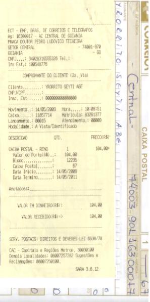 enviada para a Caixa Postal 67 da Uniaonet.com em Goiânia/Goiás-BR,