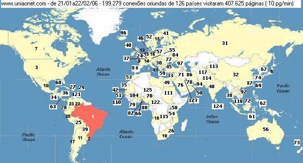 conexões oriundas de 126 países ( 10pg/min) , neste