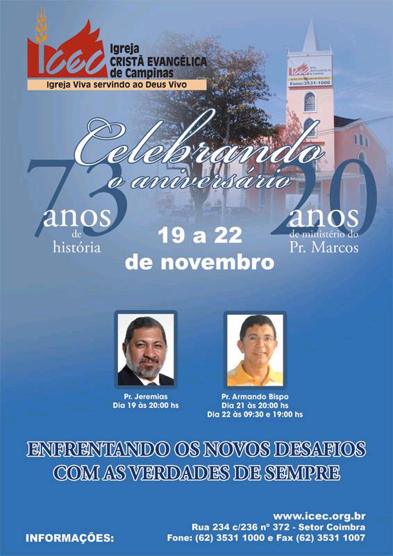 http://icec.org.br _ convite da Cantata de Natal na Igreja Cristã Evangélica de Campinas Endereço: Rua 234 esquina com 236 Nº 372 Setor Coimbra Próximo ao terminal da Praça A , atrás do estacionamento do banco Bradesco. Débora_ Secretária ICEC = = = Celebraremos com