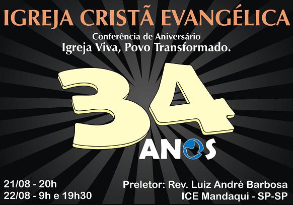 Priscilia Avino _ ICE Mandaqui _ Tel. 2233-7074 Conferência de Aniversário , Igreja Viva, Povo Transformado , 34 Anos , 21/08/2010 - 20h e 22/8 9h e 19h30 , Preletor : Rev.Luiz André Barbosa (Darci) www.icemandaqui.com Convidamos a todos para