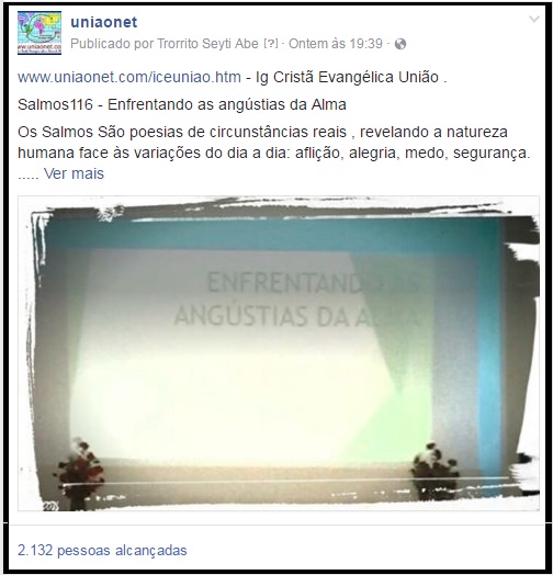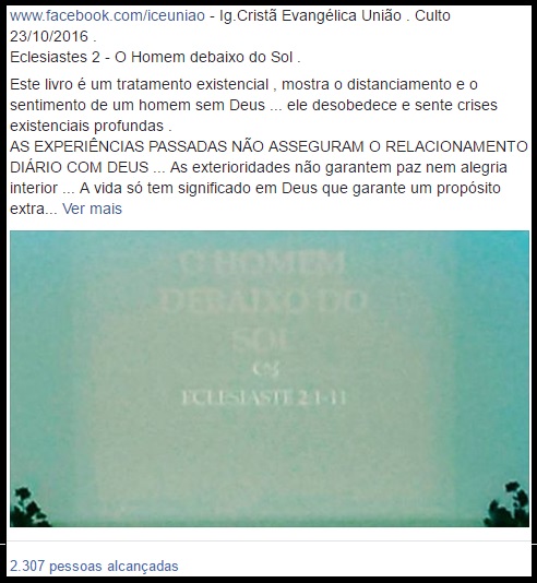 Manuel do Pq.Amazonas no domingo ás 19:00 ![]() www.uniaonet.com/iceuniao.htm - Pr.Mailon na Ig Cristã Evangélica União . culto de 11set2016 João 1:6-13 . A igreja precisa reconhecer quem ela é , que somos instrumentos na obra da salvação . que Jesus tem de ser evidenciado, que estamos nas trevas e Ele é a luz. www.facebook.com/photo.php?fbid=557204114302713 01out2016 ![]() ![]() ![]() Culto de 02Outubro2016 ![]() Culto de 09Outubro2016 www.facebook.com/uniaonet4/videos/1690068404643022 - Moacyr Moreira da Cruz Ótimo! Agora da pra acompanhar as msg do Pr. Renildo! Muito obrigado www.facebook.com/iceuniao - Ig.Cristã Evangélica União . Culto 23/10/2016 . Eclesiastes 2 - O Homem debaixo do Sol . Este livro é um tratamento existencial , mostra o distanciamento e o sentimento de um homem sem Deus ... ele desobedece e sente crises existenciais profundas . AS EXPERIÊNCIAS PASSADAS NÃO ASSEGURAM O RELACIONAMENTO DIÁRIO COM DEUS ... As exterioridades não garantem paz nem alegria interior ... A vida só tem significado em Deus que garante um propósito extraordinário para a nossa vida . Levemos Deus a sério vivendo o temor da obediência em sua Palavra , pois haverá acerto de contas . Desfrute bem a vida HOJE , com alegria e felicidade antes de morrer . www.uniaonet.com/iceuniao.htm - www.facebook.com/photo.php?fbid=557204114302713 Culto transmitidido ao vivo pelo: www.facebook.com/uniaonet4 www.facebook.com/uniaonet4/videos/1702006510115878 ![]() www.facebook.com/iceuniao - Ig.Cristã Evangélica União . Goiânia.Culto 27/11/2016 . Vivendo no temor do Senhor Exodo 32:1-9 Falta de temor de Deus é qdo distorcemos a palavra de Deus. Jesus não é um banqueiro espiritual para lhe proporcionar prosperidade O homem é um fabricante de deuses: Um Plantonista para evitar que tenhamos dissabores Satisfazer todos os meus anseios Me fazer vitorioso em todas as demandas junto a quem não é cristão Compensa a minha ignorância e irresponsabilidade em troca da minha fé · Usar o que temos para fins pecaminosos (Arão usou as jóias das mulheres para fazer o bezerro de ouro) Mais de 14mil morreram devido a adoração a esse bezerro Buscar direção naquilo que não é Deus (Moisés demorou no monte e o povo buscou orientação nos deuses pagãos) A Bíblia nos chama de ovelhas pelo pequeno senso de direção que temos, pois facilmente nos afastamos de Deus O povo fez uma grande festa pra um bezerro 4.Deleitar naquilo que não é Deus (Tiago3:. Aquele q ama o mundo o amor do Pai não está nele) Qual o nosso prazer em vir á igreja? É semelhante ao q a torcida do Palmeiras demonstrou hoje? link da transmição ao vivo pelo: www.facebook.com/uniaonet/videos/1274254765930974 ![]() www.facebook.com/uniaonet/videos/1302419069781210 www.facebook.com/iceuniao - Ig.Cristã Evangélica União . Goiânia.Culto 17/12/2016 . Cantata Natal Salmos 84 . Um dia nos teus Átrios vale mais que mil Pr. Renildo Ig.Cristã Evangélica União . Goiânia.Culto 22/01/2017 Atos 9:10-19 - Ananias - Os Guerreiro Anônimos da Bíblia Pregador : Delcino Ouse sonhar os sonhos de Deus 1Samuel:1 Adriana Guimarães O Evangelho e a Religião - Genesis 4 Pr. Renildo Ig.Cristã Evangélica União . Goiânia.Culto 19fev2017 O Evangelho e a Religião Isaias58 - Forma e Essência - Pr. Renildo 178 amigos publicaram na sua Linha do Tempo para desejar feliz aniversário : 178 amigos publicaram na sua Linha do Tempo para desejar feliz aniversário. -- Nene Gomes : Parabéns ,deus abençoe vcs sempre -- Tipo Assim Capitia : Parabéns -- Rafael Jaimes Sanchez - Feliz cumple hermanos bendiciones y abrazos -- Shambhu Prasad -- Kátia Cilene - Deus no controle de tudo! -- Neiva Vizzotto - Parabenss -- Rosemeire Amaral - Parabéns -- Jorginéa Reis - Deus realize os desejos da igreja do Senhor aqui na terra. Slalom!!! — sentindo-se festiva. -- Ricardo Ribeiro · Pires Do Rio, Goiás · Parabens -- Vera Caldas Dos Santos - Parabéns feliz aniversário. -- Jorginéa Reis . A paz de Cristo amados! -- Priscila Gomes . Parabéns -- Goreth Cabral . Parabéns -- Adeilde Mendes Vidal Nascimento : Parabéns, Deus abençoe! -- Agda Pereira : PARABÉNS -- Lucy Mara Braz Braz : Parabéns!Uma chuva de bênçãos!Abraço -- Yrorrito Seyti Abe Grato por nos abençoar em Cristo Jesus -- Silvana Soares : Felicidades -- Alda Bezerra . Parabéns muitas felicidades -- Vanilda Bernardes da Silva Parabéns!!! Que Deus continue abençoando ricamente... -- Rosangela Araujo Parabéns! Feliz aniversário -- Luzineide Costa parabéns feliz aniversário -- Evando: Mais um ano se passou, de Lutas vencidas pelo Senhor Jesus -- Trorrito Seyti Abe . Graças rendemos pelas bênçãos derramadas -- Yrorrito Seyti Abe . Obrigado Senhor pela sua vida -- Stifler Figura Pública HG Feliz aniversario meu cota k Deus te dê + anos de vidaaaa -- Lucia Souza Parabéns -- Auxiliana Manuel Feliz aniversário Querido -- Ana Maria Negrêdo Parabéns! Muitas felicidades! Que Deus continue abençoando e prosperando essa instituição. -- Ü'tåll Brënö Mïmådö feliz aniversário -- Estefânia Lima Dos Santos Parabéns!!! -- Rosa Rodrigues Parabéns que Deus continue abençoando vocês. -- Takashi Takeda Feliz aniversário para você -- Vanessa Oliveira Parabéns, desejo todas as bênçãos de Deus sobre a sua vida! -- Maina Oliveira Parabéns e muitas felicidades -- Vania Reginadeoliveira Costa Parabéns! -- Daniela Carla escreveu na sua Linha do Tempo. -- Souza Martins Wilma · Aranga, Galicia, Spain · Parabéns muitas felicidades -- Africano Ngola Parabéns pra ti -- Thays Caroline Parabéns que Deus abençoe! -- Ålbërtö Årmändïnhö parabéns espero que tenhas tido um feliz aniversário Bjos -- Auxiliana Cage Polonha Feliz aniversário Que Deus te abençoe sempre -- Orländynhö Klëyn Parabéns! -- Ró Porto · Salvador, Bahia · Parabéns!!! -- Eliane Campos Campos Parabéns que Deus abençoe . -- Marcia Carvalho Feliz aniversário! -- Cristina Agostinha Parab