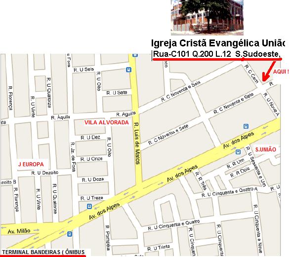 ATUALIZAÇÃO : 29/05/2019 ![]() ![]() - Pra quem tem aparelho GPS basta inserir esses números (-16.70651,-49.305635) no campo de pesquisa de endereço ou no local apropriado que se chega lá; ou - entrar no endereço https://maps.google.com.br e inserir esses números (-16.70651,-49.305635) no campo de pesquisa, que será exibida a localização da igreja. DIA