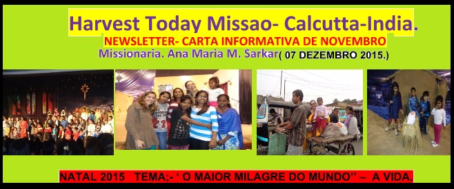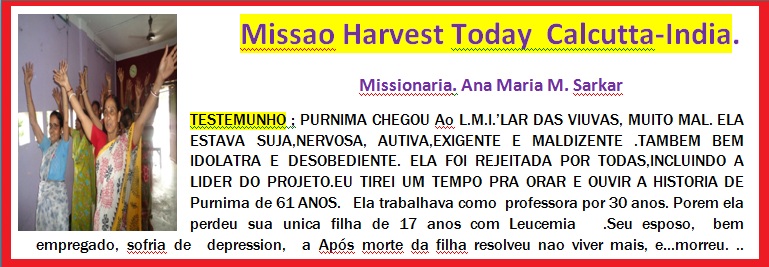 Sou grata tambem pela sua vida e disposicao de esta na brecha de intercessao por nos, junto ao Pai. Suas intercessoes tem aberto portas, tem quebrado cadeias, tem nos fortalecido para perseverar em tempos maus e tem nos feito romper em Fe cada obstaculo no Poder do Senhor. Coberto pelas vossas oracoes temos ultrapassado cada barreira que nos tentam fazer parar. Temos visto Deus tocar coracoes generosos para sustentar sua obra , no decorrer destes 16 anos, a cada mes. Certamente tributamos toda Honra, Glorias e Louvores ao nosso Deus fiel !! Ele, Senhor de nossas vidas, nos escolheu, nos uniu e tem nos usado para fazer parte do Seu plano salvador ao povo Bengali. Somos felizes por obedece-lO! Nos alegramos com os frutos do trabalho de nossas maos. Sabemos que nossa obra tem recompensa na eternidade(IICron 15:7). Servir estes pequeninos da India, e servir ao nosso Deus! Da alimento aos faminto;, agasalho;, teto e cuidado na saude dos necessitados, destas aldeias, e faze-lO ao nosso Deus que nos faz uma promessa: " ![]() O GENEROSO SERA ABENCOADO PORQUE DA DO SEU PAO AO POBRE." (PROV.22:8). Certamente ha um preco a pagar para sobreviver numa cultura como a da India, e para conquista de cada vida ! Nosso arcaico inimigo nos ataca de todas as formas e nos fere de morte. Ha momento que desejamos sim, parar tudo e retroceder, porem vossas oracoes, amor pratico, companheirismo e encorajamento e fidelidade em participar na vida da HTM nos reanima e nos faz renovar as forcas para perseverar nesta caminhada nada facil. Como disse Andrew Murry: " A ORACAO ABRE O CAMINHO PARA QUE DEUS, O PROPRIO DEUS FACA SUA OBRA EM NOS E POR MEIO DE NOS.". JUNTOS TEMOS FEITO A VONTADE DE DEUS E TOCADO VIDAS PARA A ETERNIDADE NESTES 16 ANOS NAS ALDEIAS DE 24 PARGANAS WEST BENGAL-INDIA. COMPENSA SERVIR A JESUS. ELE E SEMPRE FIEL A NOS!!! Com gratidao e amor a voce que tem feito grande diferenca em nossas vidas e na HTM. Da familia Harvest Today Miss Ana Maria L. Miranda Sarkar. MISSAO COLHEITA HOJE EM KOLKATA MISS. ANA MARIA L. MIRANDA = = ![]() Meu querido amigo e parceiros de Harvest Mission Hoje, temos o prazer de celebrar o nosso 16º aniversário de HTM este mês de julho de 2015. Você faz parte desta celebração !!! Juntos somos contínua para a construção da vida desse maravilhoso crianças da Índia, com Amor, Paixão, Dignidade e grande desejo de ver cada um deles abençoou em Jesus e em Seu grande plano para eles (Jer .29.11). Nestes anos, graças a Jesus para os frutos que temos. Muitos de nossos filhos vão continuar os seus estudos, com o desejo de ser graduados e de obter um bom emprego, outros estão em Bible College preparar seus autos para o ministério, outros já começaram a servir o Senhor Jesus em outras aldeias e cidades com Kids Club e outros frente de obras similares de HTM., Com os objetivos de abençoar outras vidas . Não é maravilhoso!?! Somos eternamente gratos ao nosso Senhor Jesus .que tem sido fiel a nós, a cada mês e Ele tem atender às nossas necessidades em glória! É uma experiência milagre em que vivemos! Hoje nós temos nossa Escola Primária com muitos filhos, três casas para quase 80 crianças fro m famílias desestruturadas e órfãos, Lar de Terceira Idade, Outreach Ministry em Korabeg, Curso de Inglês, Educação de Adultos, curso especial para os nossos filhos como. (Música, Desenho, Dance, Compute e Inglês) e plantar igrejas ministério.