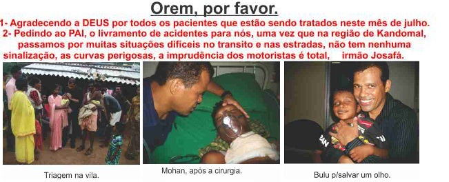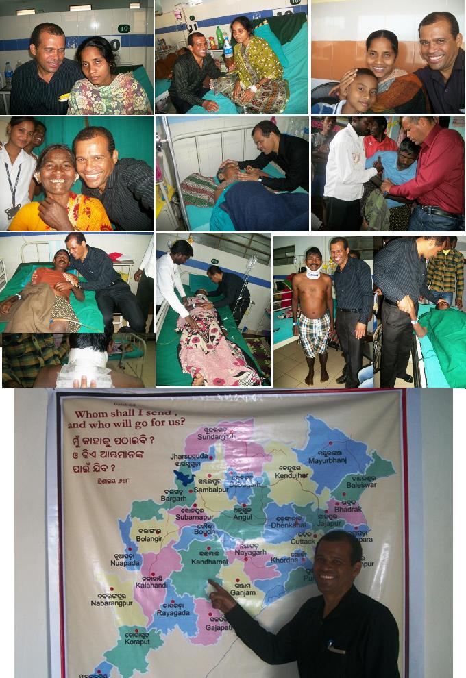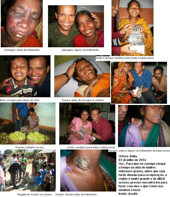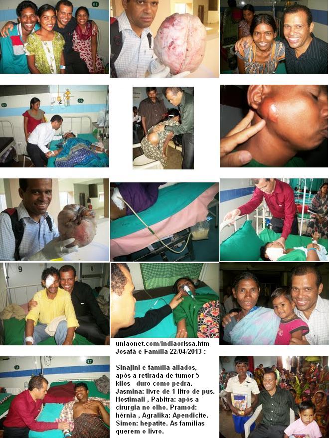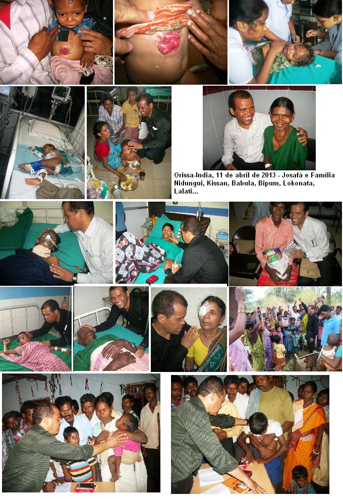 = Jah na capital, ontem ao chegar, um lider dos radicais me ameacou e disse que estah de olho em mim, se eu vou dar Biblia pra qualquer pessoa que pedi. Eu estou contando com os acompanhantes dos enfermos que me dao toda cobertura em todos os sentidos. No minimo tres irmaos que morreriam nestes dias, estao sendo livrados da morte. Mais uma vez muito obrigado por tudo. Um abraco do irmao Josafa.. 03/09/2012 _ Abencoados irmaos guerreiros de oracao. Teremos duas cirurgias de risco amanha, 03/09. KANEKA, 24 anos, para retirada da mama podre com grande tumor e a SATAMA, 60 anos que ficarah livre de um grande tumor de tireoide. Nas duas ultimas semanas foram realizadas 11 cirurgias com muito sucesso e varios outros tratamentos. Muito obrigado por sua companhia fiel, voces sao importantes demaisss em todos os procedimentos que estao sendo realizados. Um abraco do irmao Josafa. = = Orissa-India,