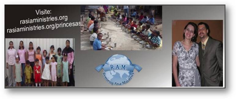 Nós do Restoring Asia Ministries gostariamos de lhe agradecer por suas constantes orações e contribuições, no qual nos ajudou a manter o orfanato como tambem 22 familias que estão trabalhando tempo integral para a expansão do evangelho de Cristo na Asia. Eu gostaria de informar que nós estamos começando um novo programa para ajudar essas preciosas criancas na India. Por causa da falta de espaço no nosso orfanato, nos estamos amarrados e sem condições de trazer mais criancas, então começamos a estudar uma outra maneira para ajudar estas outras criancas que Deus colocou em nosso coração e chegamos a conclusão que iremos fazer isto começando um programa de alimentação no Vilarejo de Babampur dando pelo menos uma refeição diaria para estas criancas que sao extremamente pobres. Este será nosso programa piloto e no ano de 2007 nos queremos abrir em outros vilarejos. Como é de nosso costume todo final de ano, nós damos um presente especial para cada menina no orfanato como tambem uma festa. Nós também tentamos dar uma oferta especial para os pastores locais para ajudar eles nas despesas de final de ano ou para o novo ano escolar, ajudando comprar material escolar para seus filhos. Você gostaria de fazer parte disto, providenciando para a vida destes homens e mulheres de Deus uma oferta especial de amor? Por favor, deixa o Espirito Santo te inspirar a enviar esta oferta especial de final de ano. Juntos nós podemos fazer muito mais para propagar o evangelho na Asia e com todos meu coração eu gostaria de lhe pedir que considere acrescemtar RAM em seu orçamento mensal nos ajudando mensalmente para nós podermos ajudar esses que não têm nenhuma esperança. Se torne um Patrocinador Hoje: Patrocine uma criança do Orfanato com US$70.00 dolares mensal, isto inclui Abrigo, ropa, comida, escola, material escolar, etc. Programa Uma Refeição, patrocine uma criança para comer a uma refeição diaria por $20.00 dolares mensal. Patrocinando uma família para propagar o evangelho de Jesus Christ: $150.00 dolares mensal. Sua Doação pode ser feita através de um deposito bancario ou online: Banco Do Brasil Ministerio Restaurando Asia Ag. 0297-6 C/c. 38141-1 Ou Gustavo Melo Ag. 0297-6 C.c 111382-8 Online: Com cartao de credito ou debito Obrigado , por nos ajudar