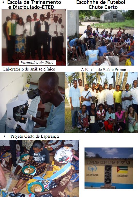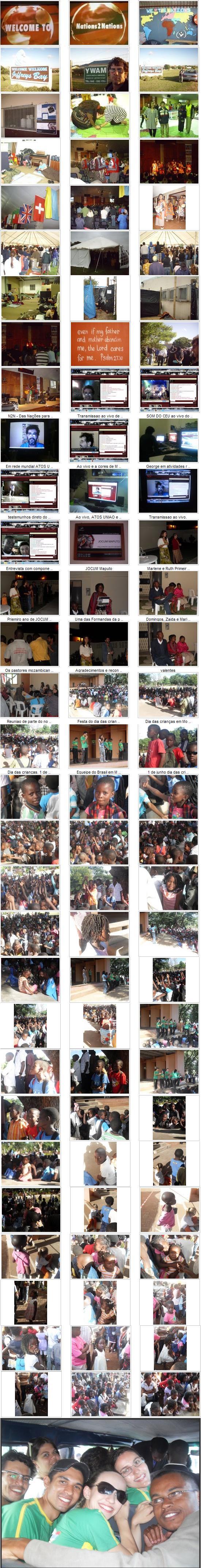 06. ) Final de tempo teorico de ETED JOCUM Maputo e equipes saindo para o tempo pratico, uma equipe vei servir em Gaza e Africa do Sul, outra permanecera em Maputo e Matola, servindo nas comunicades locais, ja esta trabalhando em hospitais, presidios, ruas, visitando as familias em Machava e servindo a igreja local. Nossa proxima ETED tera inicio em agosto, entao nao perca tempo e venha logo para Maputo - Mozambique - Africa, nilto cavalheiro Ana: "Olha só o Domingos!!! Que legal!! To feliz!" Glória Deus!!! COisa Linda"!!!" 07. ) movimento de plantacao de igrejas (MPI) 7 abr 2010 Nosso alvo, objetivo, meta e servir na Africa. Abracos nilto cavalheiro Fotos :