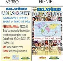 do uniaonet.com ...Estavamos tentando com a Gil , mas a complexidade do processo , com a rapidez que o sistema exirge , aliado ao grande numero de páginas do informativo , não foi possível dela realizar . Precisamos praticamente tercerizar todo o processo , e não ter de dispor do tempo que não tenho para realizar qualquer rotina nesta direção . Hoje estamos enviando para aqueles que nos solicitar , no formato encadernado com aspiral na folha A4 , tirado fotocópia do original . Mas a principal missão do informativo é dizer que pode ser impresso gratuitamente da internet , e que só precisa pagar os R$ 10,00 (dez reais ) por exemplar quem não tiver condições de imprimir ou escolher a opção da assinatura para não ter este trabalho . Segue abaixo as ultimas informações destes procedimentos . a qual repassamos para todos que tem nos acompanhado .Yrorrito Thais _ Como faço?!? Olá Yrorrito, Como vai vc? E o trabalho por ai? Recebi a encomenda (Jornal Impresso Uniaonet/Ago/2004 )que vc me mandou. Achei muito interessante, e será de muita utilidade em meu ministério de Missões!!! Só não entendi uma coisa: tenho que pagar por essa revista que me mandou? E se eu quiser receber mais, tenho que pagar? Sabe,não tenho como pagar por elas. Meu pai não é cristão e se eu falar que quero dinheiro para receber essa revista talvez ele não me dê. Que pena, achei a revista tãointeressante. Mas tudo bem quem sabe um dia eu compre com meu próprio trabalho. Agradeço por tudo e pela colaboração com meu ministério. Não pense que não gostei da revista, mas é que não tenho mesmo como compar, ok? Com amor e orações...Thaís / ICE Guaratinguetá/SP ( Muitas vezes o interesse demonstrado vale mais do que qualquer quantia ... O valor monetário é apenas uma das formas de conferirmos este interesse , e de podermos enviarmos a outros que não tem condiçòes , por enquanto não temos recursos para atender a muitos que nos solicitar , mas esperamos continuar enviando-te desde que recebamos de ti , um retorno de como estão sendo utilizadas estas informações que lhe enviamos , se estas conseguindo traduzindo-as em orações aos pedidos que cada irmão nos confia para intercedermos Yrorrito ) 6/7/04