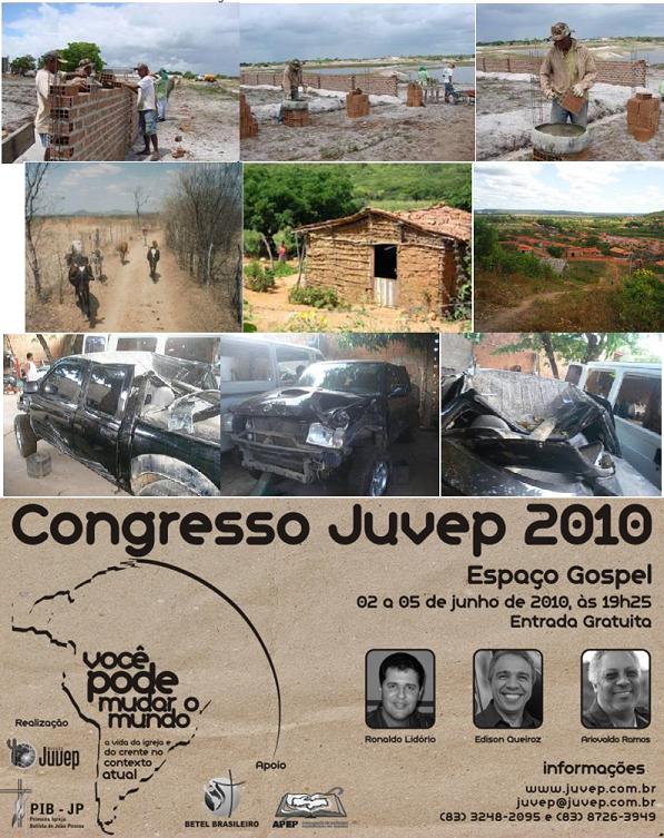 da JUVEP - Cento e quarenta e seis cidades evangelizadas. - Quarenta e oito Projetos Missionários realizados. - Quarenta e nove igrejas plantadas no sertão, 06 campos missionários revitalizados e 01 igreja reaberta. - Mais de 5.150 jovens mobilizados em Operações Invasão e Projetos Missionários. - Mais de 1 milhão de pessoas evangelizadas. - Envio de missionários aos sertões e a nações carentes como Peru e Timor Leste. - Dezenas de eventos realizados para capacitação de pastores, líderes e crentes em geral. - Apoio a campos missionários e igrejas pioneiras no interior nordestino. - Apoio a obreiros pobres do sertão, levantamento de sustento através de planos de adoção missionária. - Preparação de mais de 490 obreiros através de suas escolas de formação de obreiros – Seminário Teológico, Escola de Missões Transculturais e Seminários Sertanejos. - Pesquisas estatísticas das regiões e das cidades menos evangelizadas do Nordeste. - Realização do Congresso Sertanejo de Evangelismo na cidade de Caruaru – PE, em novembro/1995 com mais de 600 participantes. - Realização do I Congresso Nordestino de Missões na cidade de Caruaru – PE em outubro de 2003, com quase 1.000 participantes. - Lançamento da revista TodosNós – Investindo em Missões – com quatro edições publicadas. - Realização do I Congresso Nordestino para Pastores e Líderes na cidade de João Pessoa – PB em julho de 2004, com aproximadamente 400 inscritos. - Realização do I Encontro de Pastores e Líderes do Sertão na cidade de Sousa – PB em Março de 2005, com aproximadamente 150 inscritos. - Realização do II Encontro de Pastores e Líderes do Sertão na cidade de Itaporanga – PB em Junho de 2007, com aproximadamente 100 inscritos. CENTRO