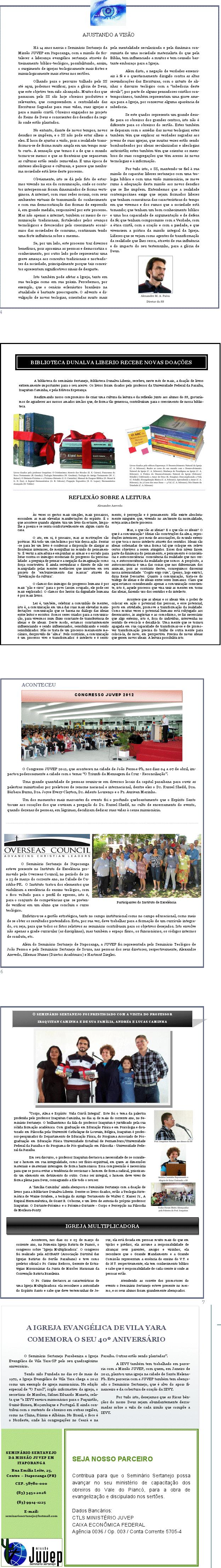 Thomaz Litz | Missão JUVEP | Projeto Radical Sertão Caixa Postal 7 | Sousa | Paraíba | 58.800-970 cel. (83) 9993 0023 | cel. (83) 8154 5055 www.juvep.com.br.. 05/09/2012