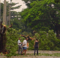 (sendo) forçadas a carregar uma (metralhadora) AK-47 pela floresta