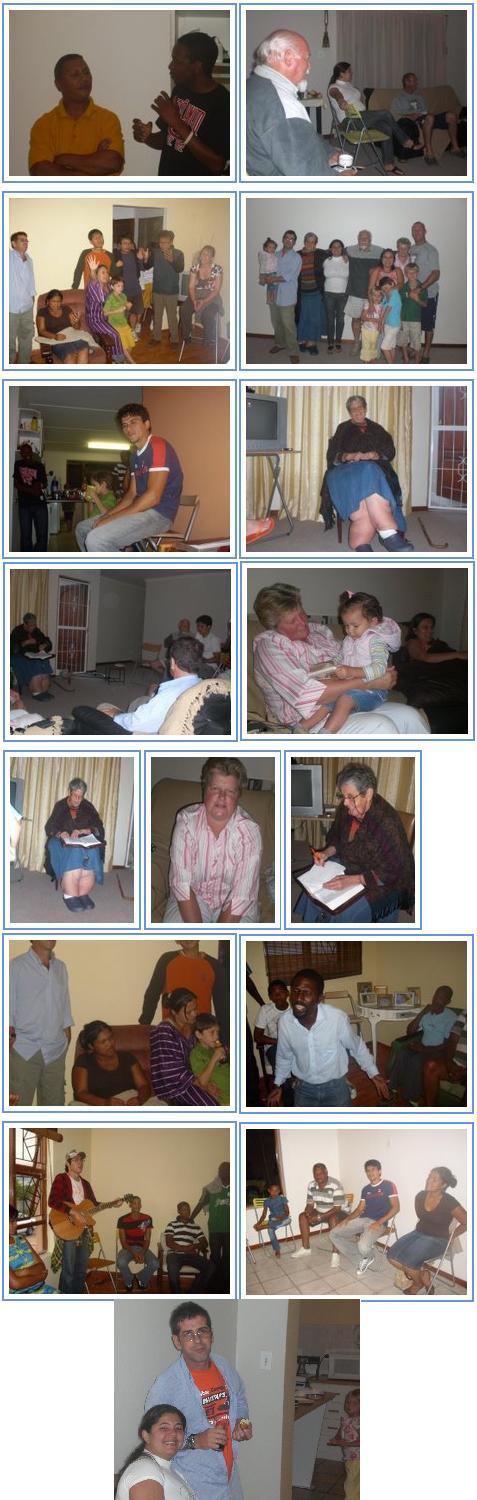 África - Dezembro de 2008. Ola, Há duas semanas, foi o encerramento das atividades de 2008 com as crianças da Escola da Fazenda. Foram reunidas cerca de 300 crianças da alfabetização até a 4ª serie em um grande culto de agradecimento. Todos estamos muito felizes com os resultados alcançados com estas crianças. Focalizamos nas suas necessidades emocionais, sociais, culturais e espirituais para desenvolvermos nossa estratégia de trabalho. Graças a Deus, que é o orquestrador de tudo isso, os sorrisos, algumas lágrimas e as orações deles ao nos despedirmos foram algumas das evidências do alcançar de Deus em suas vidas. Como familia, estamos vivendo uma fase de transição, não só pela mudança de ano, o que sempre nos leva a um período de auto-avaliações e redirecionamentos. Mas, ministerialmente, estamos encerrando uma etapa de adaptação a língua e cultura, inglesa e africana, em nosso primeiro ano fora do Brasil. 2008. As crianças foram bem na escola, Samuel passou do GRADE 01 para o GRADE 02, a Ana passou da Pre-School para o GRADE R. Terminou o periodo escolar / letivo também para elas e tudo retornará novamente já na segunda semana de janeiro de 2009. Temos grandes alvos para 2009: O aperfeiçoamento de algumas ferramentas que serão necessárias para o desenvolvimento do nosso Projeto e o levantamento de mantenedores e parceiros, para a realização do mesmo. As vindas e idas de equipes do Brasil para a África e da África para o Brasil como iniciamos já agora em 2008 e o possivel Centro de Treinamento Transcultural e de Saúde em Maputo - Moçambique em parceria com a JOCUM / YWAM e Porto Velho - Rondônia. A Parceria com o Samaritan's Feet deu uma nova luz e direção também para o Projeto em 2008 com a distribuição de calçados nas escolas rurais da região, evangelização e acompanhamento. Obrigado pela parceria e companhia durante 2008. Pedimos a Deus que derrame infinitas benções sobre sua vida. E que o real motivo de dar-mos graças pelas festas de final de ano, seja a nova vida que o Filho de Deus, Jesus e a sua vida, morte e ressurreição nos traz. E ainda que Deus faça o que for preciso para cumprir cada uma das promessas e vontade Dele em sua vida durante o próximo ano que se inicia. Grande 2009 para você. Paz e muito sucesso. Obrigado por juntos estarmos em mais um ano, 2008 foi um ano de grandes realizações e transformações. Novamente muito obrigado. Confira fotos de nossas atividades aqui na África no site: www.uniaonet.com/nilto.htm link ATUAL. Veja também as nossas propostas de trabalho e ministério no site: www.projetocidadao.com Thank you very much for support in 2008. We counted on you in 2009 Obrigado pelo seu apoio em 2008. Nós contamos com você em 2009. Com amor e estima, Familia Cavalheiro Nilto, Marlene, Samuel e Ana. www.projetocidadao.com Maputo, Moçambique - Worcester, South África África. = = = Muito obrigado por juntos estarmos em 2008. _ Meus filhos. Minha herança. Samuel e Ana. Muito obrigado. nilto cavalheiro 52. Expedição Missionária Porto Velho, RO - Brasil X Maputo . . .Novo Tempo, Um Novo Desafio. . . . Ola, Já estamos em Maputo num periodo de oração e consagração. Vendo a terra e conhecendo o povo. Fazendo contatos e organizando a Nova Base de JOCUM em Maputo. Estamos felizes pela oportunidade de Deus e crendo que Deus vai fazer grandes coisas. Já fizemos também contato com o Jan, Lider Nacional de JOCUM, Missão Novas tribos aqui em Moçambique chama-se Missão Integral, Projeto Bethel, Mocidade Cristã de Moçambique e também com o Consulado Brasileiro em Moçambique com o Embaixador Senhor Wilson Domingues que foi muito receptivo ao nosso projeto, o PROJETO CIDADÃO além de varias igrejas e irmãos. Muito obrigado pelo apoio e por acreditar em nossa equipe. Continuem orando. Obrigado! Grande abraço e sucesso, nilto cavalheiro 53. 8/1/2009 Quebrando Paradigmas e Revelando o Amor de Deus Para Todos os Povos, Semelhantemente como em Porto Velho - Rondônia - Brasil havíamos começado e estabelecido um trabalho com CÉLULAS ou GRUPOS PEQUENOS nas casas no Bairro Nacional para atendermos as familias das crianças que faziam parte do nosso programa de educação, http://www.projetocidadao.com aqui na África não seria diferente e já temos duas células ou dois grupos já estabelecidos no Samersetpark, Wode House, Worcester, South África, uma na casa dos Missionários Francinaldo e Raabe e outra em nossa casa (nilto e marlene), ambas com reuniães todas as terças feiras as 19:30 horas. Nossos objetivos com este trabalho: Primeiro: Trazer Crescimento espiritual, onde tem conhecimento de Deus há crescimento, maturidade e nunca estagnação. Segundo: Expressar o amor de Deus de forma pratica entre as pessoas. Onde existe amor, existe vida abundante. Terceiro: Trazer união e unidade entre as pessoas de diferentes raça, cor, lingua e nação. Quebrar paradigmas em um lugar de tanto preconceito e separação racial, cultural e social. Na África do Sul, tem menos de 15% de brancos, quase todos os pobres são " negros" ou "coloured" (mestiços de várias procedências). O conflito entre eles é grande. O filme "The Power Of One" mostra bem esta realidade, vale a pena você assistir. Quarto: Queremos juntos com o povo africano viver emoções com Deus e seu proposito para as nossas vidas. Pois onde existe vida abundante, existe crescimento, Pois onde existe vida abundante, existe amor, Pois onde existe vida abundante, existe união e unidade, Pois onde existe vida abundante, existe emoções, Faça parte deste desafio, ore e contribua ou venha fazer a diferença entre o povo africano. Grande abraço Grande ano de 2009, E muito obrigado por você existir em nossas vidas. Confira as fotos dos trabalhos nas CÉLULAS ou GRUPOS PEQUENOS no link www.uniaonet.com/nilto.htm link ATUAL e também no meu ORKUT http://www.orkut.com/Main#Profile.aspx?rl=mp&uid=7197425310192897008 pois faço uso do m