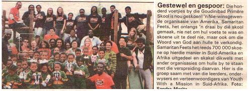 A cidade é estratégica pois faz fronteira com a África do Sul, Tanzania, Zambia, Zimbabwe e outros países além de ser caminho para o continente africano. A Visão é começar uma base de YWAM-Youth With A Mission, JOCUM-Jovens Com Uma Missão em MAPUTO-MOÇAMBIQUE, para treinar, preparar, equipar lideres locais cristãos e mobilizar cristãos do mundo todo para trabalhos no continente africano partindo de Maputo. A Missão é viver no meio do povo como o modelo de Atos dos Apóstolos, treinar o povo com os Princípios Bíblicos por meio de escolas de YWAM-Youth With A Mission, JOCUM-Jovens Com Uma Missão começando com a ETED-Escola de Treinamento e Discipulado, trabalhar com projetos sociais com os órfãos, viúvas e pessoas de idade abandonados, abrir escolas de educação infantil, ensino médio e fundamental, realizar projetos sociais em favelas, bairros periféricos e em acampamentos não reconhecidos, não oficiais. Temos a proposta de ministérios com artes, cultura, entretenimento e saúde. Endereço: JOCUM - Jovens Com Uma Missão. Rua dos Pioneiros, Machava - Maputo, Moçambique. Ao lado da Igreja Reformada em Moçambique. Tel: +25 88 2832 7530 55. Materia que saiu no JORNAL STANDARD, de Worcester e região, 4 de dezembro de 2008, sobre o trabalho de evangelização e promoção social em parceria com Samaritan Feets, é o Projeto Cidadão também no continente AFRICANO. Para quem entende Africâner ou Afrikanns - Eu na foto marcado com um quadrado. YWAM Worcester - www.projetocidadao.com Matter that left in the STANDARD NEWSPAPER, of Worcester and area, December 4, 2008, about the evangelização work and social promotion in partnership with Samaritan Feets, it is the Projeto Cidadão also in the AFRICAN continent. For who understands Africâner or Afrikanns - I in the picture marked with a square. YWAM Worcester - www.projetocidadao.com http://www.jocum.org.br/noticias.php?noticia=530 Leia esta materia, "Chegamos a Maputo, pá"! Site da JOCUM Brasil, abraços nilto cavalheiro / JOCUM - YWAM. África 57. CONHECENDO O PROJETO CIDADÃO BRASIL - ÁFRICA (30/04/2009) Chegamos a Maputo - Moçambique - África. Por meio de uma iniciativa do Projeto Cidadão / JOCUM - Jovens Com Uma Missão-Porto Velho-RO e após alguns anos de trabalho no interior do país, JOCUM chega a Maputo, capital de Moçambique e desafia pioneiros como você, para fazer diferença nessa nação de língua portuguesa! Pá! Essa é uma das saudações mais comuns entre as nações da África que falam Português. Em Moçambique, não seria diferente, a não ser por este fato: tem base nova em Maputo, pá! Jocum já está marcando presença em outras localidades moçambicanas como Idugo, por exemplo, onde os missionários Cléber e Débora trabalham com as comunidades locais na área de desenvolvimento comunitário, atividades com homens casados, acampamentos, evangelismo e discipulado. Mas, a capital, Maputo, com seus quase 350.000 km2 e uma população de cerca de 2.770.000 habitantes (incluindo a região metropolitana e mais o município Matola), até agora ainda estava inalcançada. No entanto, a partir deste ano de 2009, depois de muitos anos de trabalho no interior do país, na região amazonica o Projeto Cidadão juntamente com toda uma equipe de pioneiros, está dando início à abertura de mais uma frente de trabalho de Jocum na África, atuando em Maputo e regiões adjacentes, para trabalhar com várias atividades conectadas à visão de Missão Integral: desenvolvimento comunitário a partir de obras sócio-assistenciais, cuidados com famílias em situação carente, dentre outras ações que, além de revelar o caráter do Senhor, comunicam aos cidadãos moçambicanos o Evangelho na prática, com as duas mãos na obra! Nesse contexto, Jocum Maputo, durante os primeiros meses desse ano, está vivendo sua primeira fase de pioneirismo e implantação, na qual os obreiros vão estar, aos poucos, deixando sua primeira base de apoio na África que ficava na África do Sul – lugar esse no qual eles estiveram todo o apoio das lideranças locais e nacionais de Jocum – e chegando a Maputo, onde começarão o processo de aluguel de suas novas casas e também outros detalhes que precisam ser encaminhados para a abertura da base. Neste tempo também (meses de março e abril), estamos com parte da nossa equipe no Brasil para um tempo de divulgação e promoção, o objetivo da viagem da equipe ao Brasil é: mostrar um pouco dos desafios e muitas oportunidades da sua participação neste trabalho pioneiro, queremos compartilhar o que Deus tem nos proposto como base, como missão. Aqui em Maputo - Moçambique tem lugar para todas as Tribos. Está dando tudo certo, a base já está devidamente implantada, os obreiros já estão instalados e, agora, estamos vivendo a fase de preparativos para lançar a primeira ETED-Escola de Treinamento e Discipulado, a ETED pioneira de Jocum Maputo, que já será bilíngüe – Português/Inglês. Em princípio, planejamos trabalhar com ensino de Inglês para as comunidades locais, com serviços de cuidados às famílias a ser desenvolvido em grupos de estudos nas casas, educação e saúde, esportes, cultura, lazer, artes e entretenimento dentre outros projetos. Então, se liga aí, pá! Você tem chamado para trabalhar com pioneirismo, missão integral, desenvolvimento comunitário e proclamação do Evangelho do Senhor na prática? Se você acredita que Deus te deu esse perfil, seu lugar é em Maputo - Moçambique, ÁFRICA! Prepare seu passaporte, porque, estamos com toda a equipe aguardando você para encher a cidade de Maputo e a nação moçambicana com o amor de Deus, fazendo-O conhecido! FONTE: www.jocum.org.br nilto correa cavalheiro Projeto Cidadão Brasil - África Para saber mais, acesse: www.projetocidadao.com e www.uniaonet.com/nilto.htm e-mail: contatos@projetocidadao.com Veja minha COLUNA no site do TG www.tribalgeneration.org Confira nosso site atualizado