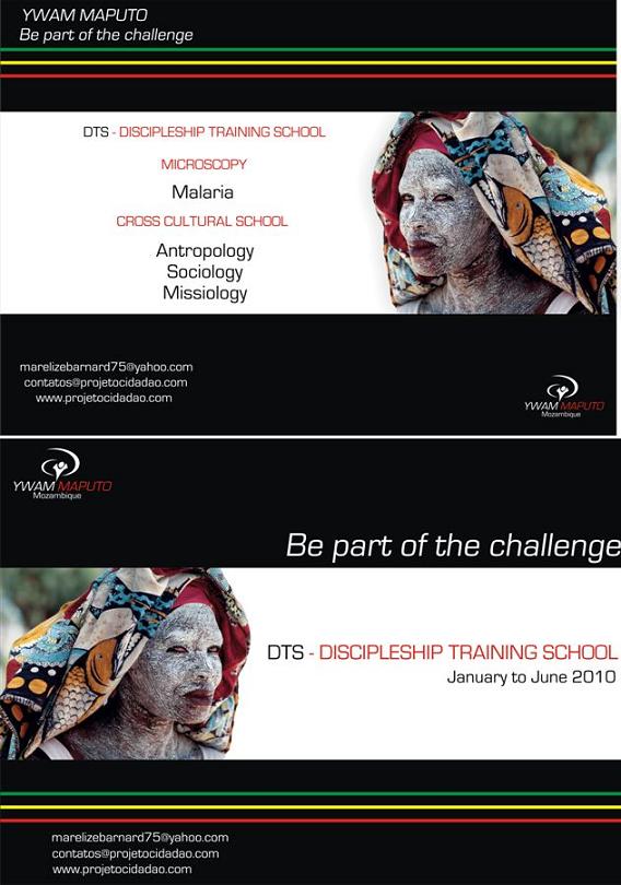 One of our teams practice of YWAM DTS Maputo. Domingos, Helton, Valens and Angelo. Jobs in Maputo and Matola Directed by Marlene Tarabillo DTS. August to December 2010. One of our teams practice of YWAM DTS Maputo. Julia, Neta e Claudio, Proceedings in the Maputo e Matola. August to December 2010. DTS Directed by Marlene Tarabillo One of our teams practice of YWAM DTS Maputo. Alberto, Simeon, Beatriz, Amina, Ismael and Paulo. Proceedings in the provinces of Zambezia, Sofala and Niassa is also a time MALAWI. August to December 2010. DTS Directed by Marlene Tarabillo Fred Berrington being presented by Marlene Tarabillo YWAM Maputo, was a speaker at DTS and is missionary in northern Niassa Province in Mozambique. Besides friend. The team