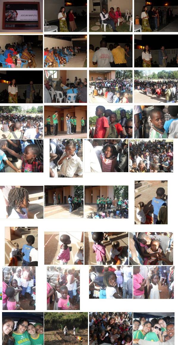 Ywam Maputo - Projeto Cidadão. It is impossible to walk through the streets of the city of Maputo without feeling the huge and urgent need to share the Gospel and to show the love of God in action. Besides the social poverty experienced by the people,there is a great measure of abandonment, injustice, prostitution, curses, drugs, pornography, alcoholism and violence, as well as racial, social and cultural corruption. God is an unknown to many of the people here and as a result there is much pain and spiritual affliction. An emptiness exists in the hearts of the people that only God can fill. For this reason, the YWAM (Youth With A Mission) bases of Maputo, Mozambique and of Worcester, South Africa, along with Projeto Cidadão are fervently reaching out in the areas of Machava, Maputo and Matola. It will be a time of intensive and united activity with teams focusing their prayers and energy at strategic points within the communities. Outreach will be done in public squares, orphanages, day care centres, surrounding neighborhoods. Some islands are also reached as we partner with local churches. The evangelism team introduces Jesus Christ as the only true source of satisfaction, hope and salvation. The evangelism is done through music, praise and worship, plays, dances, preachings and the indispensable one-on-one evangelism. These strategies are adjusted according to the place and atmosphere within which they are taking place. The team trained in South Africa in two DTS's (Discipleship Training Schools) with different focuses, one with children in need and the other in soccer. The team consists of 21 people of differing nationalities and cultures (16 adults, 5 children). YWAM, Maputo is a smaller but equally lively and diverse base consisting of people from Brazil, South Africa, Mozambique as well as other nations. We conducted a short interview with the leader of the team Simon that is also one of the directors of YWAM Worcester's DTS's, South Africa. We wanted to get a perspective from their team as to their impression of the people of Mozambique. This group will be in Machava - Mozambique until January 13 and will later move the outreach on into Malawi.. Projeto Cidadão: How was it that you and the team came to be in Mozambique? Simon: When we where in South Africa we prayed about where to go and God told us to come to Mozambique. Projeto Cidadão: This team is aimed at the youth. What is the average focus age of those you are reaching out to? Simon: Children from the age of 3 years up to 18 years old. Projeto Cidadão: How many nationalities does the team consist of? Simon: We come from 8 different countries. Projeto Cidadão: What did you hope to find in Maputo? What is your perspective of Mozambique and your impression of the people here so far? Simon: We had hoped that Maputo would be just like any other city like the ones we show in South Africa, but Maputo is different, the building might look the same but the people are different, the are more African, welcoming and loving too, except that we are finding it had to communicate with them due to the language barrier, but we enjoy them. Projeto Cidadão: How has the work been for you? Are the results the ones you expected? Simon: Our time so far here has really been great, am sure we will enjoy more as time goes on, the experience is so great and are we learning so much. Projeto Cidadão: What would you like to say to the youth of Maputo and Mozambique? Simon: Wake up and see the beauty of what God has given to you as the youth of Mozambique, you hold in your hands the power to change this nation and make it even much more better nation for you and the future generation. If only you discover that your the people who are to begin the the process of transformation. Projeto Cidadão: What do you have to the personnel of the Projeto Cidadão and of YWAM of Maputo? Simon: Honor you for the work you are doing here in Mozambique, my prayer is that God will continue to pour his blessings upon your work, and upon you and your team. Projeto Cidadão: Do you think bring other teams for new performances in partnership with the Projeto Cidadão and YWAM of Maputo? Simon: Its my prayer that there will be continued partnership between Ywam Maputo and the Ywam base in Worcester South Africa. Projeto Cidadão:Thank you Simon and the team for being with our team here in Machava for this time. And thanks also to YWAM Worcester, South Africa. If you would like to know more and maybe even join our teams' that are reaching the world and making a difference in this generation, don't waste time, get in touch with us. You could play a part in the transformation of the world. Our first DTS of YWAM Machava - Maputo - Mozambique will begin on January 11, 2010. Don't waste time. Come to MAPUTO 63 . Expedição Para a Africa _ JOCUM Maputo – Projeto Cidadão - Julho de 2010 Objetivos: Anunciar JESUS como único e suficiente Salvador - Ilhas de Catembe e Inhaca -Praças, mercados públicos, -CUltos ao ar livre -bairros carentes - Chapas ( meio de transporte) -Discipulados -Trabalho com igrejas Com Louvores, ministrações, testemunhos e a Pregação do Evangélho do Reino Ajuda social : Desenvolvimento comunitário Trabalho em orfanato Alimentar mendigos e familias pobres Ensinar meios de trabalho e lucros de renda. Ex: crochê, culinária, costura, elétrica, mecânica... Área da saúde, higiene e cuidados- palestras de conscientização. ”PARA DEUS, NÃO HÁ LIMITE ENTRE O CÉU E A TERRA, QUANTO MAIS ENTRE POVOS E NAÇÕES” Você quer