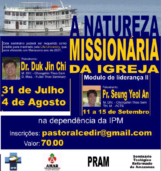 a natureza missionária da igreja; palestraste Dr. Duk Jin Chi. Dias