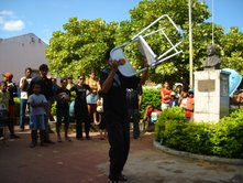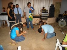 Até parece uma história, mas é a mais pura realidade do sertão do Piauí. Ontem 04/02/2010 fomos até um povoado chamado Buenos Aires no município de São Lourenço exibir o filme “Madalena livre da culpa”. Buenos Aires é um típico povoado do sertão com poucas casas, e de pessoas bem simples, mas com o coração fechado para o evangelho de Jesus… É um povoado onde o catolicismo popular é muito forte e não existe a presença de nem um crente. Logo na chegada avistamos uma pequena casinha onde paramos e buscamos informações sobre o local e se existiria a possibilidade de exibir o filma ali em frente da casinha, mas para nossa supressa a doca da casa se sentiu ofendida por saber que os chamados crentes estavam em sua porta querendo roubar os fie da sua igreja… Tentamos de todas as formas explicar a ela que não era nosso objetivo roubar ninguém da igreja dela… Tentamos outras casas, e pra nossa supressa mais uma vez as pessoas bateram as portas em nossa cara, foi ai que fiquei sabendo que ali perto moravam uns parentes de minha mãe… Fui correndo procurá-los, pois tinha a esperando que eles sabendo que eu era parente nos receberiam e teríamos a oportunidade desejada para exibir o filme ali. Graças a Deus o nome de Jesus foi exaltado naquele lugar… Exibimos o filme para um numero de 25 pessoas em frente de um pequeno bar no povoado onde os meus parentes que eu nem sabia da existência deles ali fizeram questão de convidar os vizinhos para não somente ver o filme como pedirem oração por seus problemas. Ficamos felizes com tudo o que aconteceu ali, pois temos certeza que uma porta foi aberta para que a mensagem de Cristo chegasse ali naquele lugar. Deus é fiel em todas as coisas! Eliezer Neto Saudações no Senhor Jesus! Na ultima semana tivemos uma experiência muito importante em um pequeno povoado do sertão do Piauí onde fomos realizar uma programação missionária através da exibição do filme “Madalena livre da culpa”. Para nossa surpresa o povoado era totalmente católico, e não gostava da presença de crentes por lá... Logo na chegada paramos em uma pequena casa onde fizemos contato com a dona da casa que se ofendeu com a nossa visita e nos expulsou de lá... Na segunda casa os donos nos deixaram falando sozinhos quando descobriram que éramos crentes. Tivemos que enfrentar uma grande batalha para poder exibir o filma no povoado... Somente quando já estava tudo escuro foi que conseguimos montar o equipamento na frente de um pequeno bar onde o proprietário creio eu, usado por Deus permitiu o uso da energia sem cobrar nada. Bom... Diante desta situação estamos orando a Deus para conseguir comprar ou que alguém se levante e nos oferte um data show e um gerador de energia para que possamos dar continuidade nos trabalhos de evangelismo no sertão do Piauí. Então se você conhece alguém que poderá está nos ajudando encaminhe este e-mail, e esteja orando para que Deus levante os recursos necessários para isso, pois os valores são altos e não temos condições de comprar tais equipamentos. Por favor, nos ajude a completar a obrar que Deus nos deu no sertão do Piauí! Nossas necessidades são: Um Gerador de Energia Um Data Show Paz amigos
