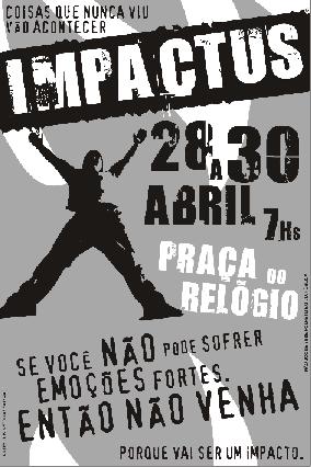 Graça, Paz e Fogo! Esses tem sido dias de muito trabalho para nosso ministério, pois estaremos realiando mais um IMPACTU´S. Esses são os gastos que teremos com o impacto na cidade de Anísio de Abreu nos dias 12, 13, 14, e 15 de Outubro de 2006. ALIMENTAÇÃO: 500 REAIS( essa alimentação só conta com o que chamanos de basico). TRANSPORTE DA EQUIPE: 300 REIAS (Esse transporte é de São Raimundo a Anísio de Abreu, pois o transporte da equipe de sua cidade de origem é por conta de cada um). SOM: 400 REAIS (Equipamento que será usado nos trabalhos de rua durante o Impacto). TOTAL DE CUSTO DO IMPACTUS 02/2006: 1.200 REAIS Alimentação, transporte e som é o que mais pesa em um trabalho como esse. ORE PARA QUE DEUS SUPRA NOSSAS NECESSIDADES. No amor de Cristo. Eliezer Neto Missionário Líder Missões Piauí Oferta enviar para: Missões Piauí Banco Bradesco Ag. 0674-2 C/c 580267-9 17/10/06 Milagres acontecem!!!!
