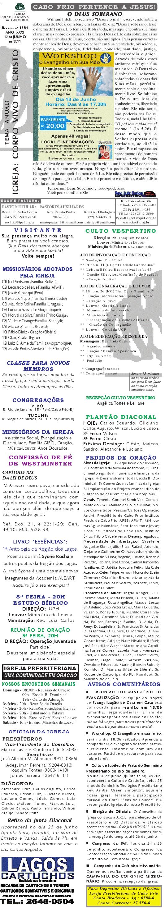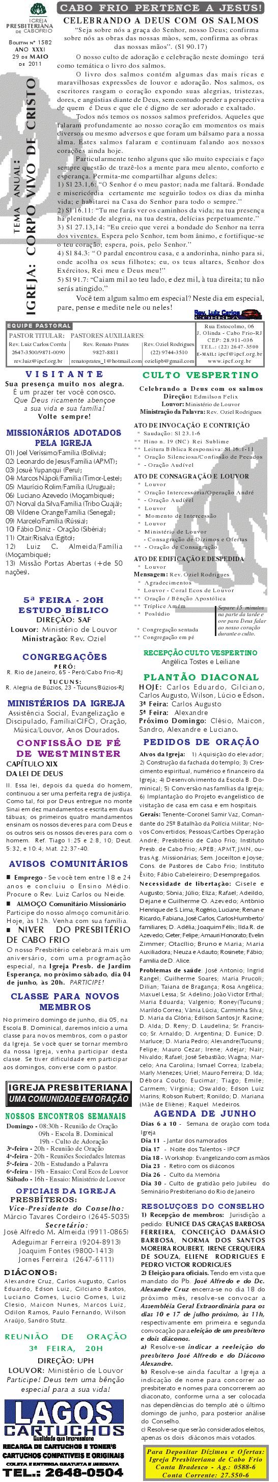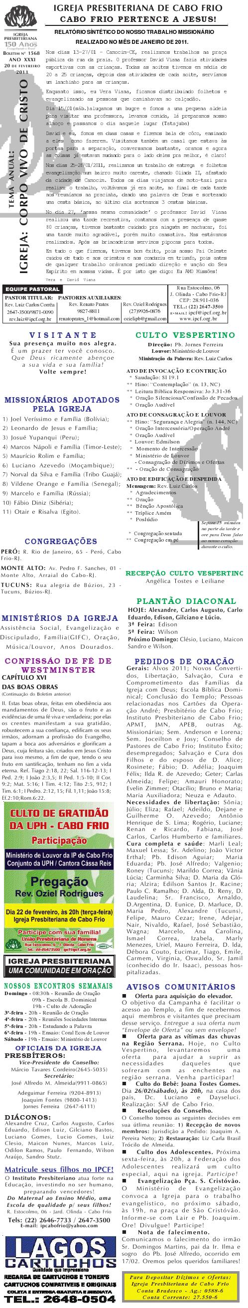 Presbiteriana de Cabo Frio ·11/02/2017 - Boletim de domingo da IPB Cabo Frio:
