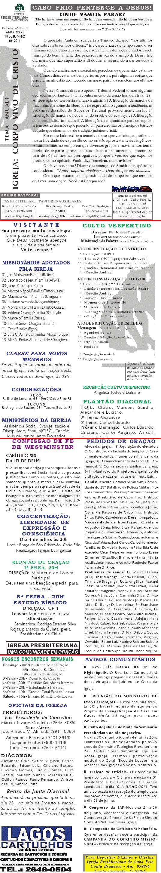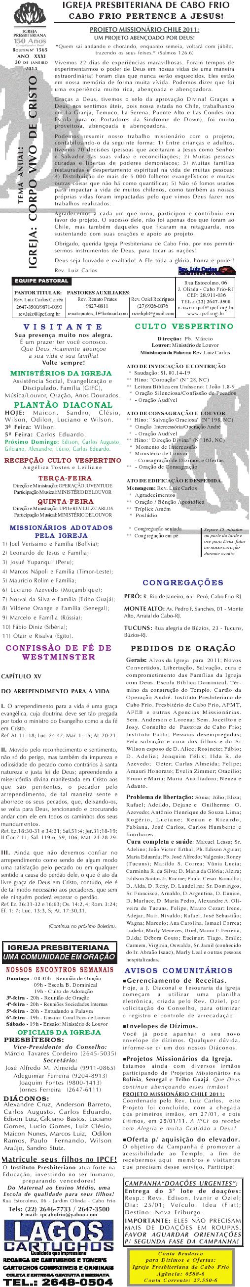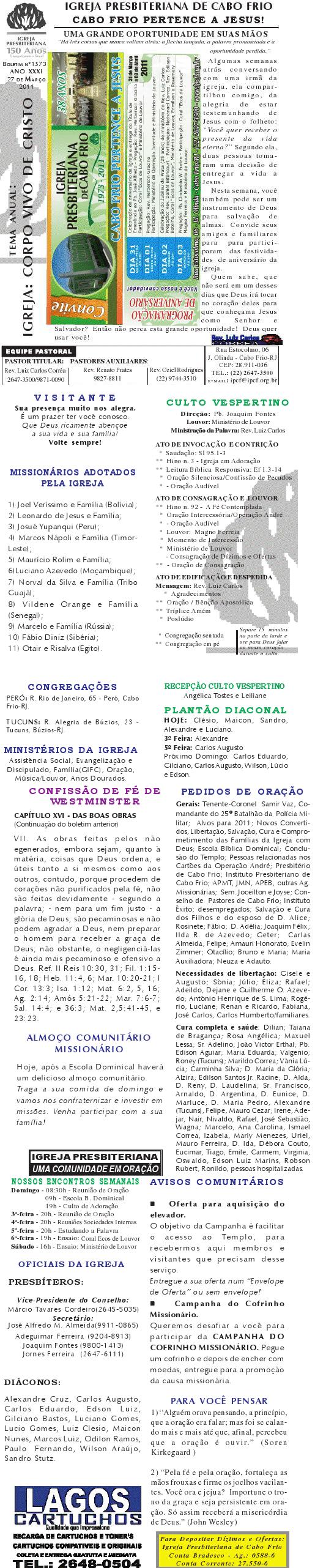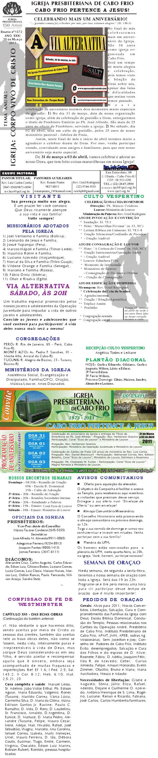 Presbiteriana de Cabo Frio ·11/02/2017 - Boletim de domingo da IPB Cabo Frio: