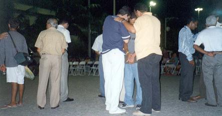 Presbiteros orando por decidos na praça após culto evangelístico Evangelização na principal praça do bairro. = = = PROJETO VERÃO CABO FRIO
