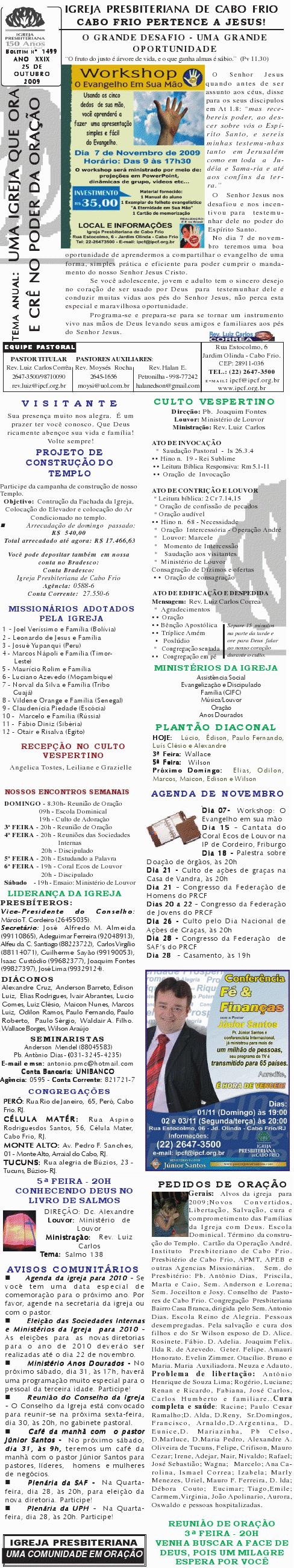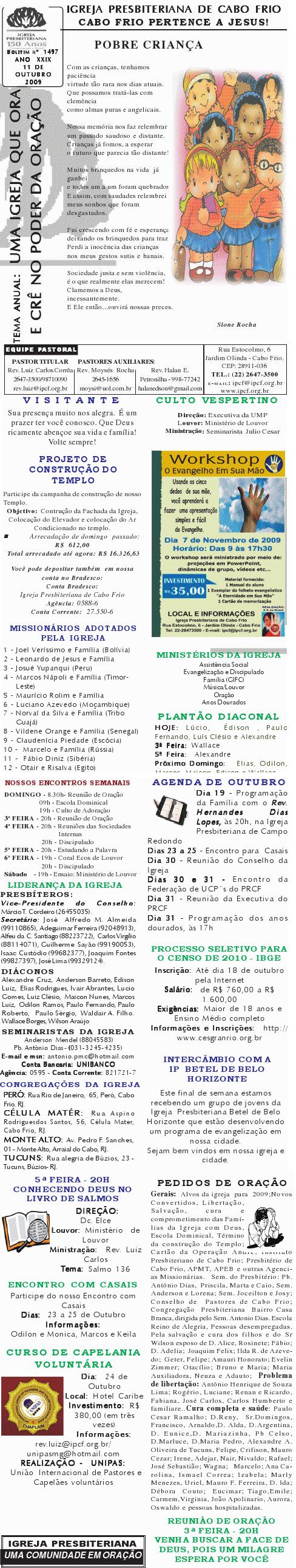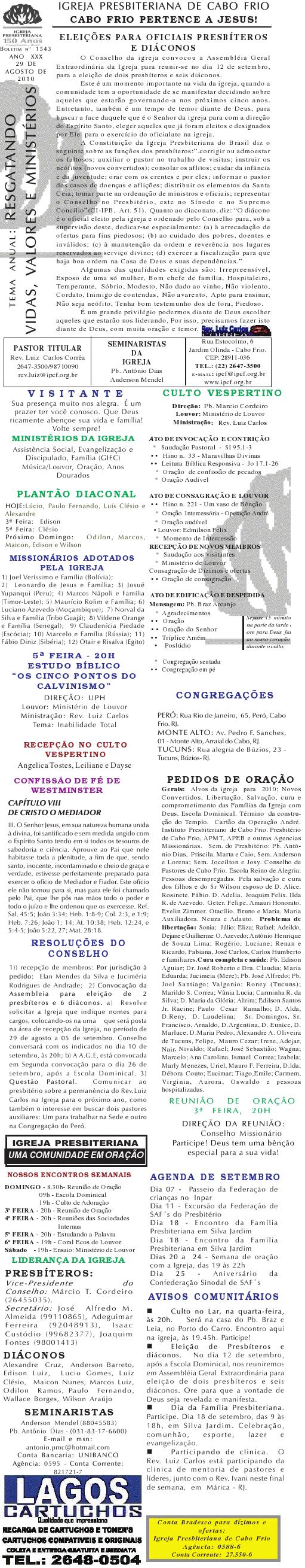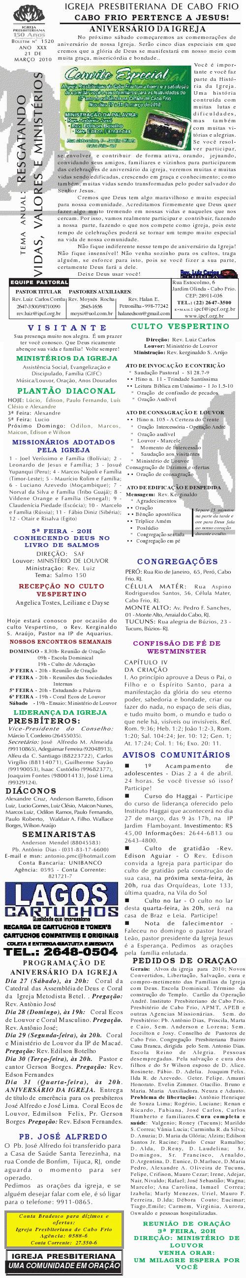 Presbiteriana de Cabo Frio, às 9h. Contaremos com a presença do Secretaria Municipal de Infância. Segue anexo carta com informações mais detalhadas. Abraços Rev. Luiz Carlos Presidente do Conselho