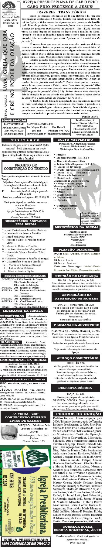 Informações atuais ver : www.uniaonet.com/presbcabofrio.htm |