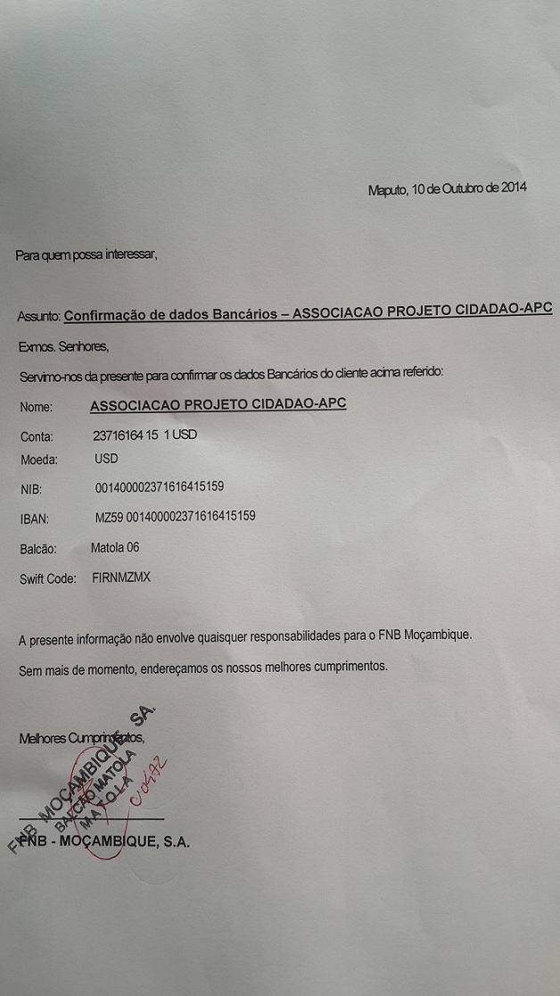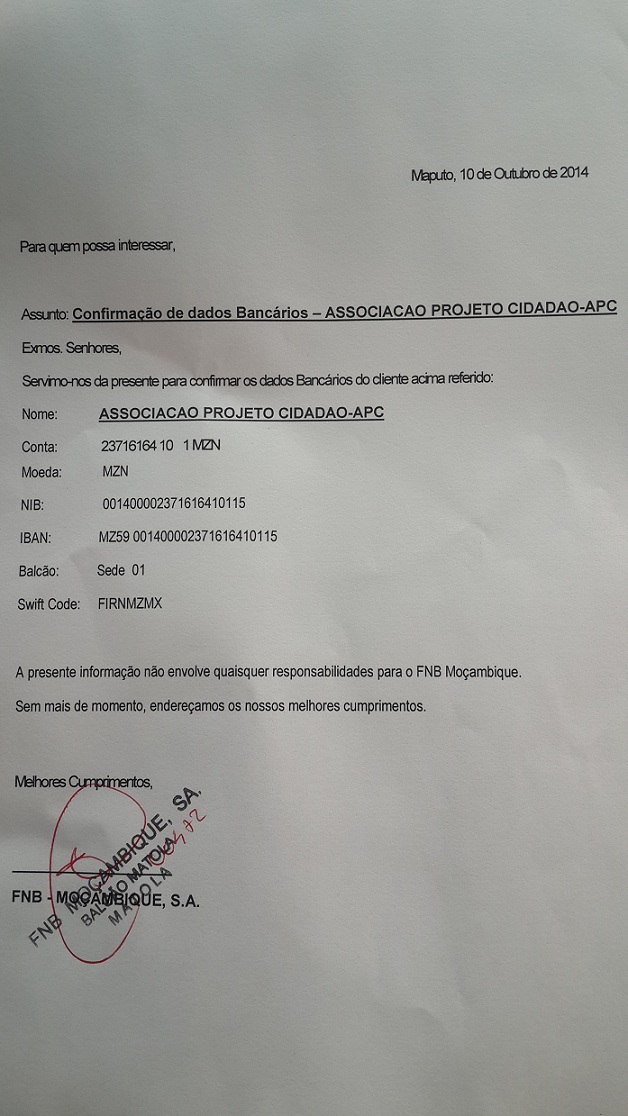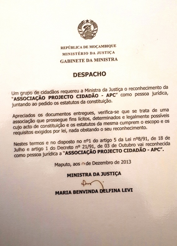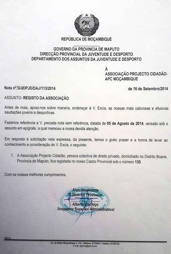 00 258 8233 38 100 ou ainda visite o nosso web site: www.projetocidadao.org Associação Projeto Cidadão – APC Maputo Cidade – Moçambique – África.