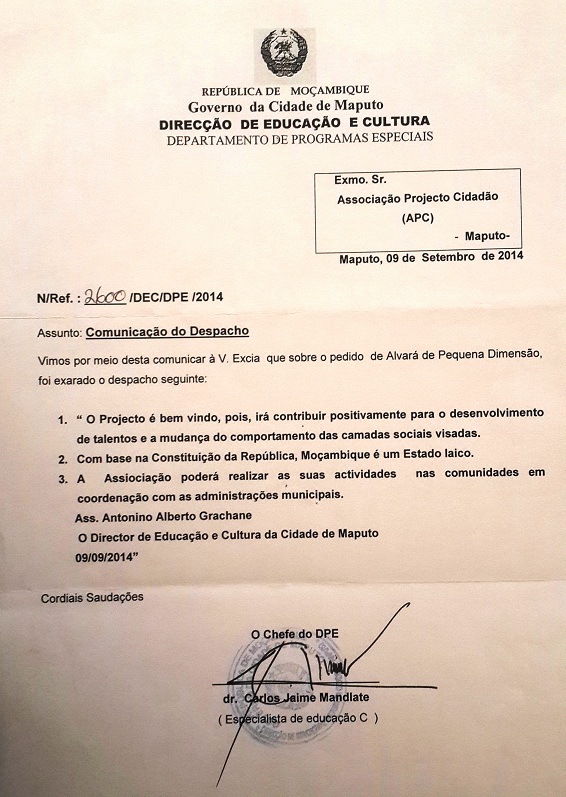 ASSOCIAÇÃO PROJETO CIDADÃO – Moçambique – África =
