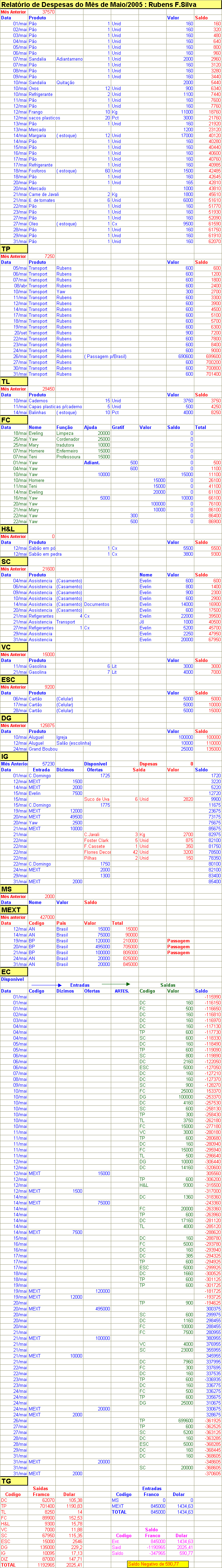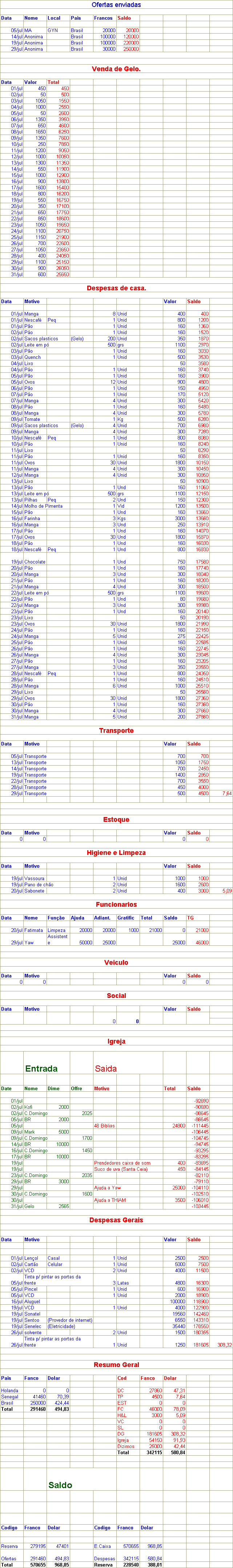 o nosso relatório de despesas e as ofertas que nos é enviada por voces.