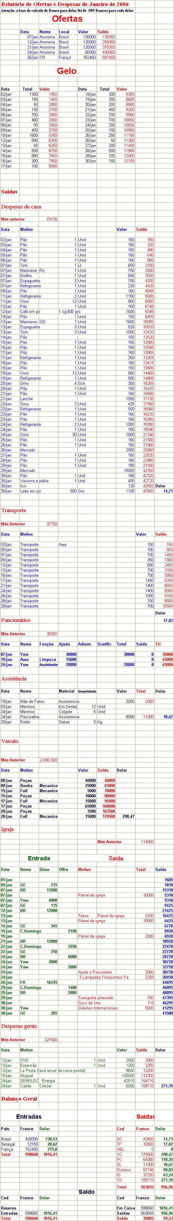 Graça e Paz!! Aqui esta o relátório de despesas do mês de Janeiro. Como